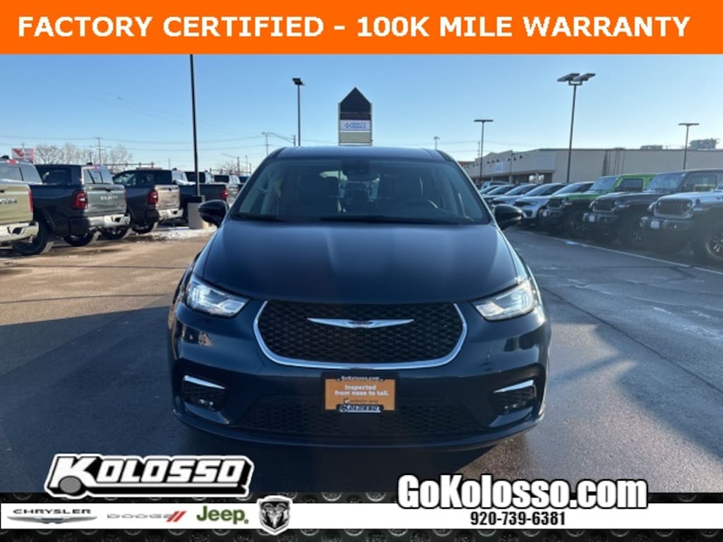 Recent Arrival! Certified. FACTORY CERTIFIED 7 YEAR/100K MILE WARRANTY, Pacifica Touring L, 4D Passenger Van, 3.6L V6 24V VVT, 9-Speed 948TE Automatic, FWD, Fathom Blue Pearlcoat, Black/Alloy/Black Artificial Leather, 10.1" Touchscreen Display, 3rd row seats: split-bench, Air Conditioning, Apple CarPlay/Android Auto, Heated front seats, Heated steering wheel, Low tire pressure warning, Memory seat, ParkView Rear Back-Up Camera, Power driver seat, Power Liftgate, Quick Order Package 27L, Radio: Uconnect 5 w/10.1" Display, Steering wheel mounted audio controls.