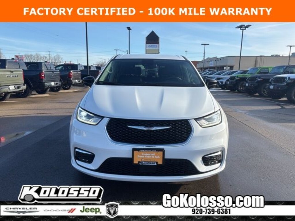Recent Arrival! Certified. FACTORY CERTIFIED 7 YEAR/100K MILE WARRANTY, Pacifica Touring L, 4D Passenger Van, 3.6L V6 24V VVT, 9-Speed 948TE Automatic, FWD, Bright White Clearcoat, Black/Alloy/Black Artificial Leather, Heated steering wheel, Low tire pressure warning, ParkView Rear Back-Up Camera, Power driver seat, Quick Order Package 27L, Radio: Uconnect 5 w/10.1" Display, Steering wheel mounted audio controls.