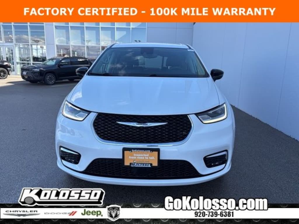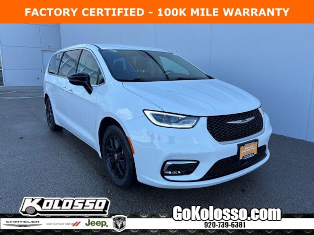 Pacifica Touring L, 4D Passenger Van, 3.6L V6 24V VVT, 9-Speed 948TE Automatic, FWD, Bright White Clearcoat, Black/Alloy/Black Artificial Leather, 10.1" Touchscreen Display, Apple CarPlay/Android Auto, Quick Order Package 27L, Radio: Uconnect 5 w/10.1" Display, Steering wheel mounted audio controls.