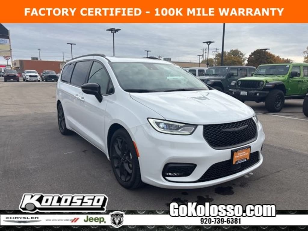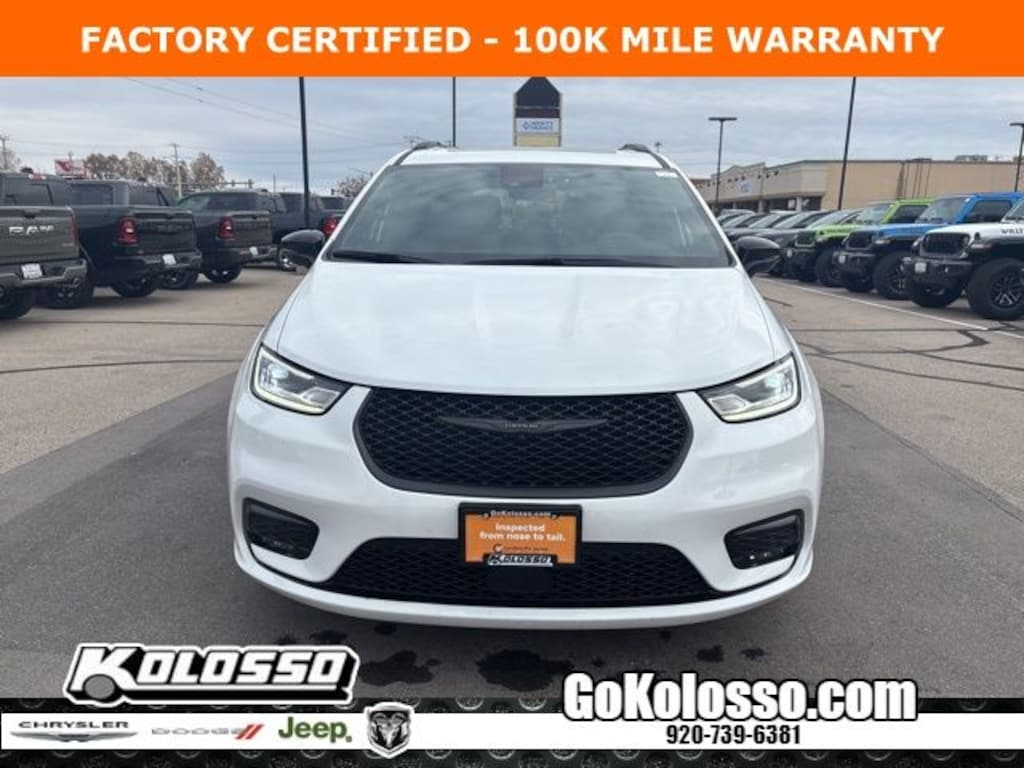 --FACTORY CERTIFIED WITH 100,000 MILE WARRANTY 2025 PACIFICA LIMITED WITH "S" APPEARANCE PACKAGE, HANDS FREE POWER LIFTGATE, 20" BLACK OUT ALLOY WHEELS, 13 ALPINE AUDIO SYSTEM, DUAL MOONROOF, HEATED AND VENTILATED FRONT LEATHER SEATS, 8 WAY POWER DRIVERS SEAT WITH MEMORY, HEATED 2ND ROW SEATS, APPLE CARPLAY, REMOTE START AND MUCH MORE. CLEAN CARFAX AND CHRYSLER FACTORY CERTIFIED WITH WARRANTY TO 100,000 MILES (SEE SALESMAN FOR DETAILS)