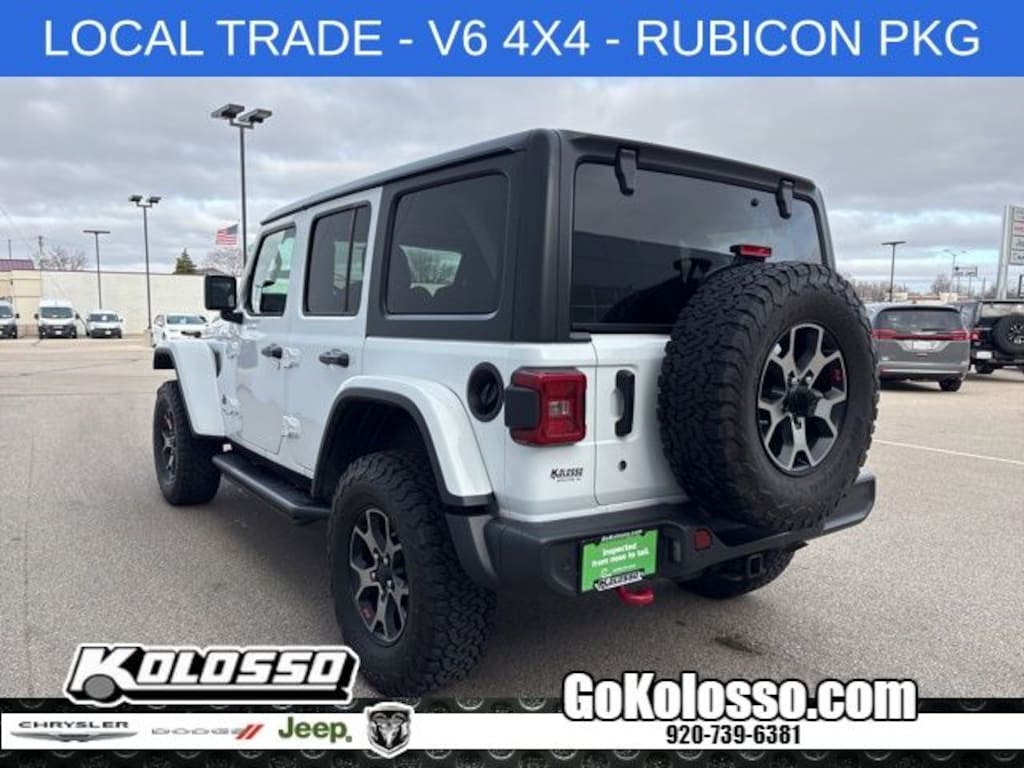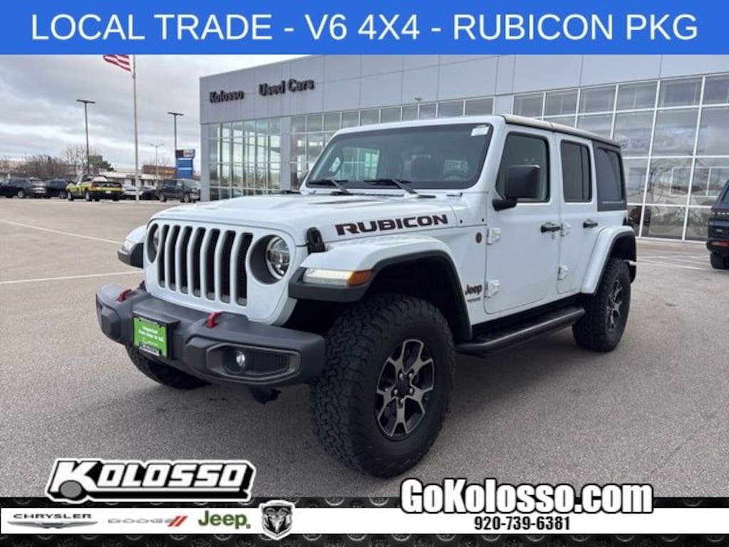 Certified. Wrangler Unlimited Rubicon, 4D Sport Utility, 3.6L V6 24V VVT, 8-Speed Automatic, 4WD, Bright White Clearcoat, Black Cloth, 240 Amp Alternator, 7 & 4 Pin Wiring Harness, 700 Amp Maintenance Free Battery, Apple CarPlay/Android Auto, Auxiliary Switches, Blind Spot & Cross Path Detection, Class II Receiver Hitch, Cold Weather Group, Daytime Running Lamps LED Accents, Front LED Fog Lamps, Heated Front Seats, Heated Steering Wheel, LED Lighting Group, LED Reflector Headlamps, LED Taillamps, Low tire pressure warning, ParkSense Rear Park Assist System, ParkView Rear Back-Up Camera, Quick Order Package 24R, Radio: Uconnect 4 w/7" Display, Safety Group, Steering wheel mounted audio controls, Trailer Tow & HD Electrical Group.