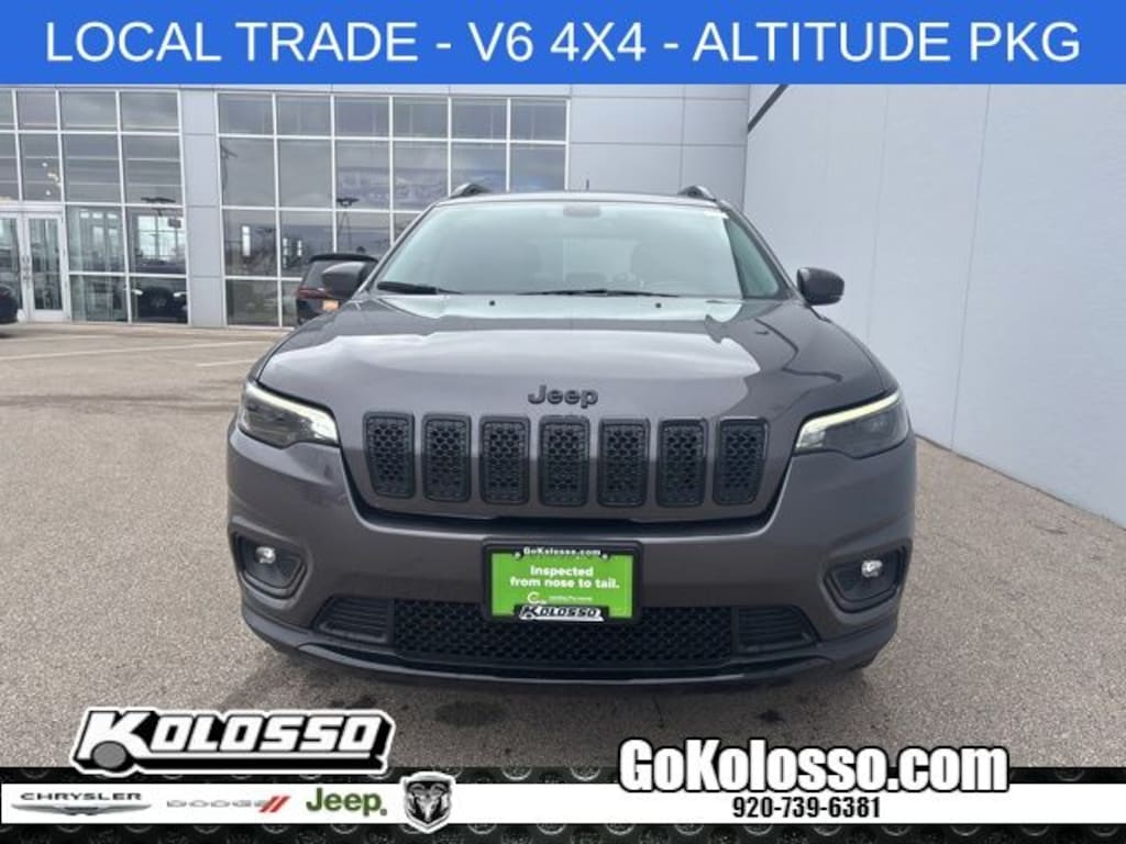 Recent Arrival! Certified. Cherokee Altitude, 4D Sport Utility, 3.2L V6, 9-Speed 948TE Automatic, 4WD, Granite Crystal Metallic Clearcoat, Black Cloth, All-Season Floor Mats, Altitude Package, Black Accent Stitching, Black Day Light Opening Moldings, Cold Weather Group, Engine Block Heater, Gloss Black Exterior Accents, Gloss Black Exterior Badging, Gloss Black Grille Surrounds, Gloss Black Side Roof Rails, Heated Front Seats, Heated Steering Wheel, Low tire pressure warning, ParkView Rear Back-Up Camera, Piano Black Interior Accents, Quick Order Package 26N Altitude, Radio: Uconnect 4 w/7" Display, Remote Start System, Steering wheel mounted audio controls, Wheels: 18" x 7" Gloss Black 5-Spoke Aluminum, Windshield Wiper De-Icer.