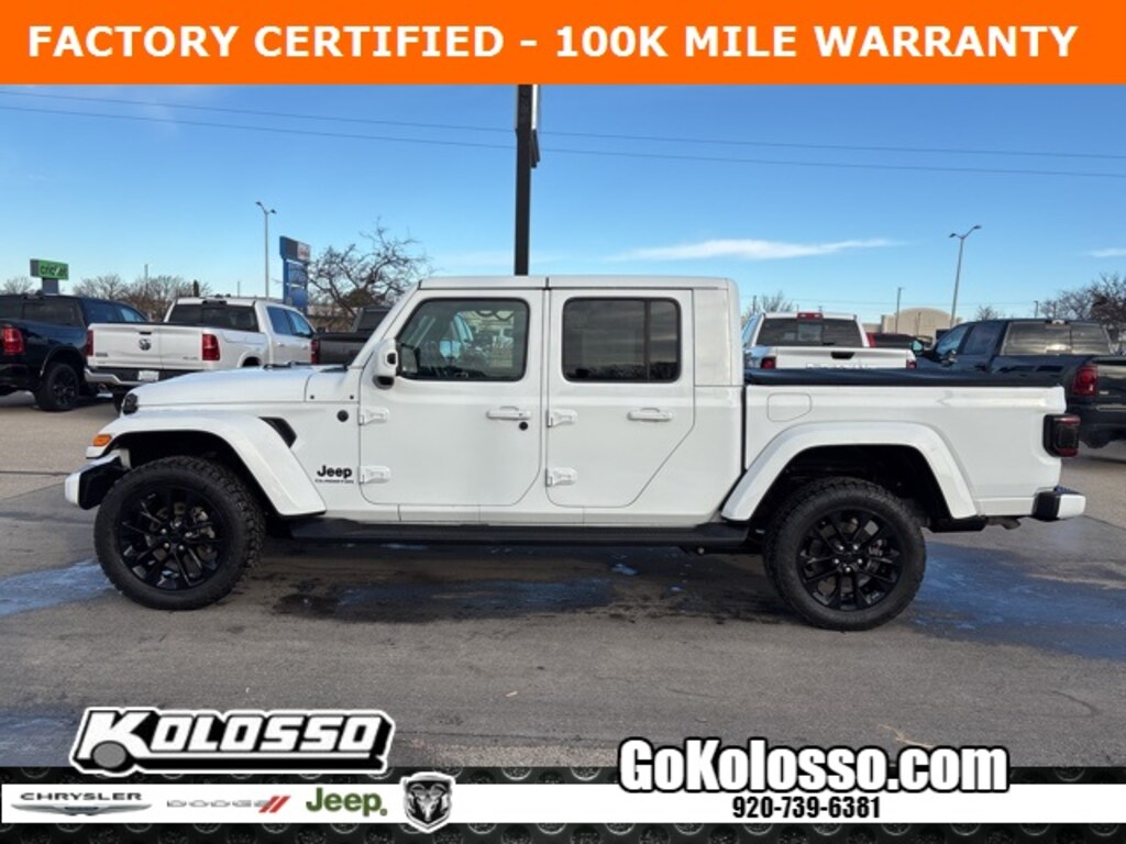 Recent Arrival! Certified. FACTORY CERTIFIED 7 YEAR/100K MILE WARRANTY, Gladiator High Altitude, 4D Crew Cab, 3.6L V6 24V VVT, 8-Speed Automatic, 4WD, Bright White Clearcoat, Black Leather, 1-Year SiriusXM Guardian Trial, 240 Amp Alternator, 5-Year SiriusXM Traffic Service, 5-Year SiriusXM Travel Link Service, 700 Amp Maintenance Free Battery, 8.4" Radio & Premium Audio Group, 8.4" Touchscreen Display, Advanced Brake Assist, Advanced Safety Group, Alpine Premium Audio System, Auto High Beam Headlamp Control, Auto-Dimming Rear-View Mirror, Auxiliary Switch Group, Auxiliary Switches, Blind Spot & Cross Path Detection, Body Color 3-Piece Hard Top, Body Color Exterior Mirrors, Body Color Front Bumper, Body Color Grille w/Gloss Black Rings, Body Color Rear Bumper w/Step Pads, Body-Color Door & Tailgate Handles, Caramel Interior Accents, Class IV Hitch Receiver, Cold Weather Group, Dana M210 Wide Front Axle, Dana M220 Wide Rear Axle, Daytime Running Lamps LED Accents, Emergency/Assistance Call, For Details, Visit DriveUconnect.com, Front LED Fog Lamps, Full Body Color Fender Flares, Full Length Floor Console Premium Armrest, Full Speed Forward Collision Warning Plus, GPS Navigation, HD Radio, Heated Front Seats, Heated Steering Wheel, Heavy-Duty Engine Cooling, High Altitude Package, Leather Wrapped Park Brake Handle, Leather Wrapped Shift Knob, Leather-Trimmed Bucket Seats, LED Lighting Group, LED Park Turn Lamps, LED Premium Reflector Headlamps, LED Taillamps, Low tire pressure warning, MOPAR Spray In Bedliner, ParkSense Rear Park Assist System, Premium Dark Exterior Accents, Quick Order Package 24N High Altitude, Radio: Uconnect 4C Nav w/8.4" Display, Rear Armrest w/Cupholder Seat, Remote Proximity Keyless Entry, Safety Group, SiriusXM Traffic Plus, SiriusXM Travel Link, Sport Front Shock Absorbers, Sport Rear Shock Absorbers, Sport Suspension, Steering wheel mounted audio controls, Trailer Hitch Zoom, Trailer Tow Package, Wheels: 20" x 8" Gloss Black Aluminum, Wrapped I/P Bezel w/Caramel Stitch.