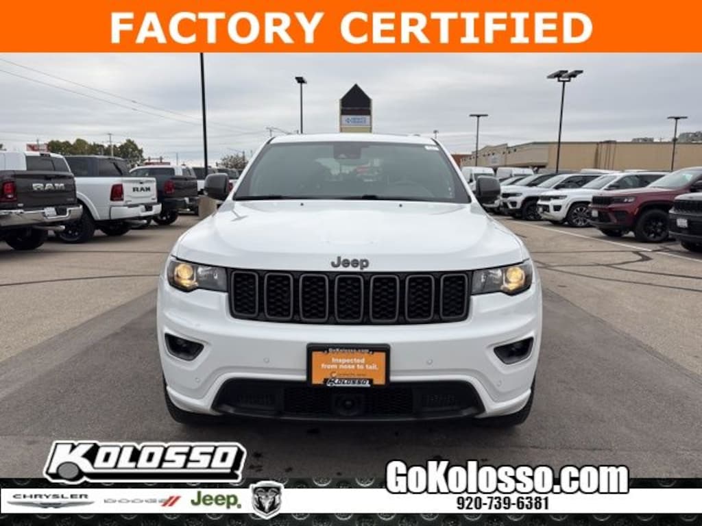 Recent Arrival! Certified. FACTORY CERTIFIED 7 YEAR/100K MILE WARRANTY, Grand Cherokee 80th Anniversary Edition, 4D Sport Utility, 3.6L V6 24V VVT, 8-Speed Automatic, 4WD, Bright White Clearcoat, Black Leather, 1-Year SiriusXM Guardian Trial, 4G LTE Wi-Fi Hot Spot, 8.4" Touchscreen Display, Adaptive Cruise Control w/Stop, Advanced Brake Assist, Air Conditioning, Apple CarPlay, Apple CarPlay/Android Auto, Berber Floor Mats w/80th Anniversary Tag, Black Roof Molding, Body Color Claddings, Body Color Door Handles, Body Color Shark Fin Antenna, Dark Day Light Opening Moldings, Dark Headlamp Bezel Finish, Dark Lens Taillamps, Emergency communication system: SiriusXM Guardian, Front Accent/Body Color Fascia, Full Speed FWD Collision Warn Plus, Google Android Auto, GPS Antenna Input, GPS Navigation, Granite Crystal Exterior Accents, Granite Crystal Exterior Badging, Granite Crystal Exterior Mirror Caps, Granite Crystal/Black Grille, HD Radio, Heated steering wheel, Integrated Voice Command w/Bluetooth, Jeep 80th Anniversary Badges, Jeep 80th Anniversary Edition, Lane Departure Warning Plus, Leather Trimmed Bucket Seats (JY), Low tire pressure warning, LT. Tungsten Interior Accent Stitching, Memory seat, Navigation System, Parallel & Perp Park Assist w/Stop, ParkView Rear Back-Up Camera, Piano Black/Anod. Gunmetal Interior Accents, Power driver seat, Power windows, Quick Order Package 2BK 80th, Radio: Uconnect 4C Nav w/8.4" Display, Rain Sensitive Windshield Wipers, Rear Accent/Body Color Fascia, SiriusXM Satellite Radio, SiriusXM Traffic Plus, SiriusXM Travel Link, Steering wheel mounted audio controls, Wheels: 20" x 8.0" Granite Crystal Aluminum.
