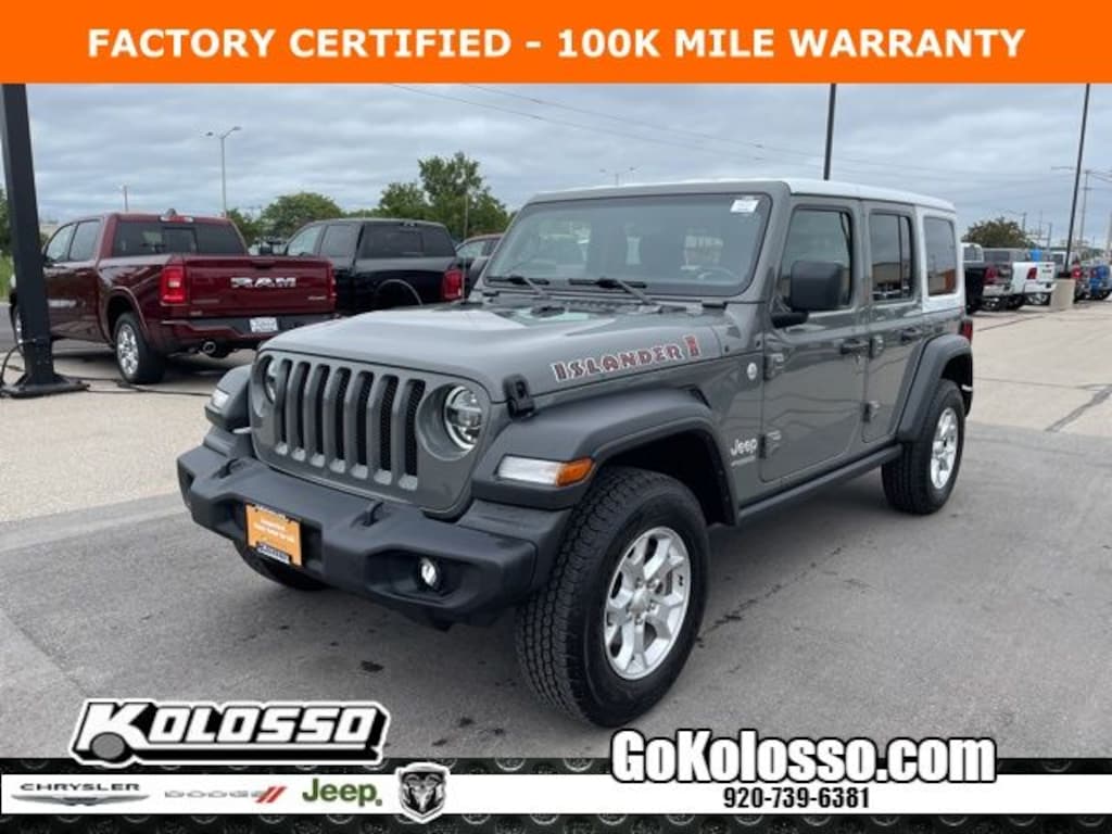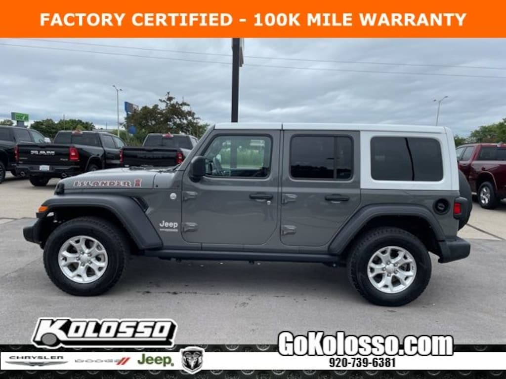 Recent Arrival! Certified. FACTORY CERTIFIED 7 YEAR/100K MILE WARRANTY, Wrangler Unlimited Islander, 4D Sport Utility, 3.6L V6 24V VVT, 8-Speed Automatic, 4WD, Sting-Gray Clearcoat, Black Cloth, 240 Amp Alternator, 7 & 4 Pin Wiring Harness, 7.0" Touchscreen Display, 700 Amp Maintenance Free Battery, Air Conditioning, Air Conditioning w/Auto Temperature Control, Air Filtering, Apple CarPlay, Automatic Headlamps, Auxiliary Switches, Black 3-Piece Hard Top, Ceramic White I/P Bezels, Class II Receiver Hitch, Cloth Seats w/Islander Logo (DISC), Cluster 7.0" TFT Color Display, Cold Weather Group, Deep Tint Sunscreen Windows, Dual Top Group, Front 1-Touch Down Power Windows, Front LED Fog Lamps, Front MOPAR Grab Handles, Google Android Auto, GPS Antenna Input, Heated Front Seats, Heated Steering Wheel, Integrated Center Stack Radio, Islander Hood Decal, Islander Package, Islander Swing Gate Plaque, Leather Wrapped Steering Wheel, LED Headlamp & Fog Lamp Group, LED Premium Reflector Headlamps, Low tire pressure warning, MOPAR All-Weather Floor Mats (DISC), MOPAR Cargo Tub Liner, MOPAR Grab Handle Kit, MOPAR Islander Plus Package (DISC), MOPAR Mesh Sunbonnet Top, MOPAR Stainless Door Sill Guards, ParkView Rear Back-Up Camera, Power Heated Mirrors, Premium Black Sunrider Soft Top w/Dual Top Group, Quick Order Package 25J Islander (DISC), Radio: Uconnect 4 w/7" Display, Rear MOPAR Grab Handles, Remote Keyless Entry, Security Alarm, Selectable Tire Fill Alert, Silver Jeep Badges, SiriusXM Satellite Radio, Soft Tire Cover-Tiki Bob Edition, Speed Sensitive Power Locks, Steering wheel mounted audio controls, Stop-Start Dual Battery System, Sun Visors w/Illuminated Vanity Mirrors, Technology Group, Trailer Tow & HD Electrical Group, USB Host Flip, Wheels: 17" x 7.5" Silver Alloy (DISC), Wrangler Decal.