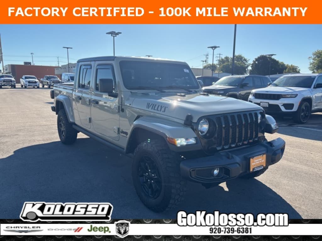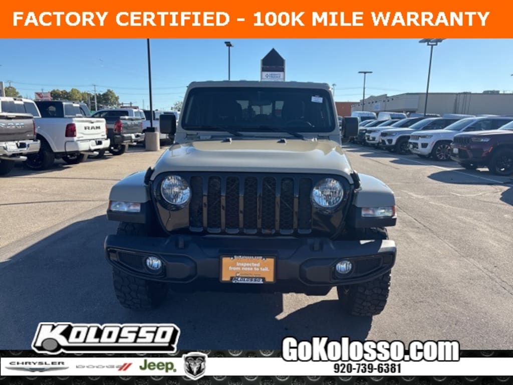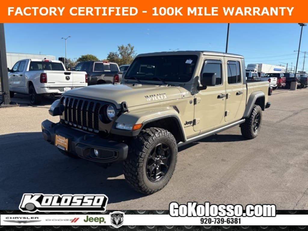 Recent Arrival! Certified. FACTORY CERTIFIED 7 YEAR/100K MILE WARRANTY, Gladiator Sport, 4D Crew Cab, 3.6L V6 24V VVT, 8-Speed Automatic, 4WD, Limited Edition Gobi Clearcoat, Black Cloth, 240 Amp Alternator, 4-Wheel Drive Decal, 97 MPH Vehicle Max Speed Calibration, Air Conditioning, Anti-Spin Differential Rear Axle, Apple CarPlay/Android Auto, Black Grille, Body Color Fender Flares (2-Piece), Bridgestone Brand Tires, Cigar Lighter, Class IV Receiver Hitch, Daytime Running Lamp System, Deep Tint Sunscreen Windows, Emergency communication system: SiriusXM Guardian, Front Heavy Duty Red Accent Shock Absorbers, Heavy-Duty Engine Cooling, Low tire pressure warning, Mold In Color Bumper w/Gloss Black, MOPAR All-Weather Slush Mats, ParkView Rear Back-Up Camera, Power steering, Protection Sill Rails, Quick Order Package 24K Willys Sport, Radio: Uconnect 4 w/7" Display, Rear Heavy Duty Red Accent Shock Absorbers, Removable Ash Tray, Smoker's Group, Steering wheel mounted audio controls, Trailer Hitch Zoom, Trailer Tow Package, Wheels: 17" x 7.5" Black Aluminum w/Gray Pad, Willys, Willys Hood Decal.