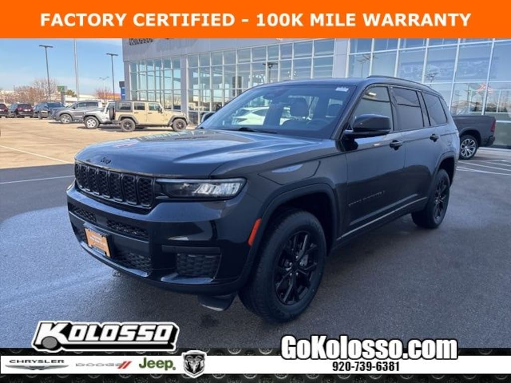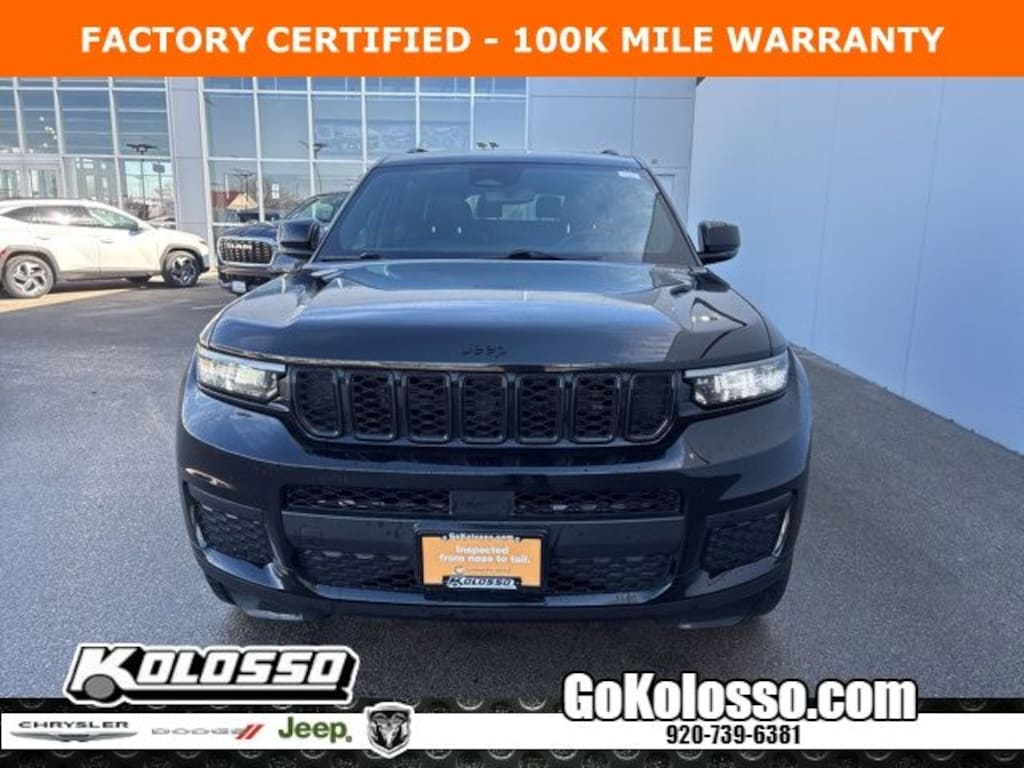 Recent Arrival! Certified. FACTORY CERTIFIED 7 YEAR/100K MILE WARRANTY, Grand Cherokee L Altitude, 4D Sport Utility, 3.6L V6 24V VVT, 8-Speed Automatic, 4WD, Diamond Black Crystal Pearlcoat, Global Black Artificial Leather, 115V Auxiliary Power Outlet, 3rd Row Charge-Only USB Ports, Altitude Appearance Package, Black Headliner, Capri Leatherette/Suede Seats, Delete Laredo Badge, Emergency communication system, Gloss Black Exterior Accents, Heated Front Seats, Heated Steering Wheel, Low tire pressure warning, ParkView Rear Back-Up Camera, Power Liftgate, Quick Order Package 23B Altitude, Radio: Uconnect 5 w/8.4" Display, Rain Sensitive Windshield Wipers, Remote Start System, Selectable Tire Fill Alert, Steering wheel mounted audio controls, Wheels: 18" x 8.0" Fully Painted Aluminum 1, Wireless Charging Pad.