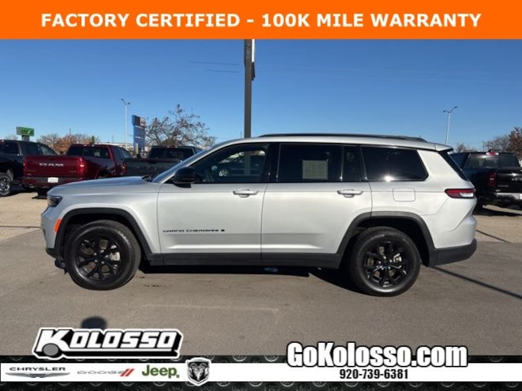 Recent Arrival! Certified. FACTORY CERTIFIED 7 YEAR/100K MILE WARRANTY, Grand Cherokee L Altitude, 4D Sport Utility, 3.6L V6 24V VVT, 8-Speed Automatic, 4WD, Silver Zynith, Global Black Artificial Leather, 115V Auxiliary Power Outlet, 3rd Row Charge-Only USB Ports, Altitude Appearance Package, Black Headliner, Capri Leatherette/Suede Seats, Delete Laredo Badge, Gloss Black Exterior Accents, Heated Front Seats, Heated Steering Wheel, Power Liftgate, Quick Order Package 23B Altitude, Radio: Uconnect 5 w/8.4" Display, Rain Sensitive Windshield Wipers, Remote Start System, Selectable Tire Fill Alert, Wheels: 18" x 8.0" Fully Painted Aluminum 1, Wireless Charging Pad.