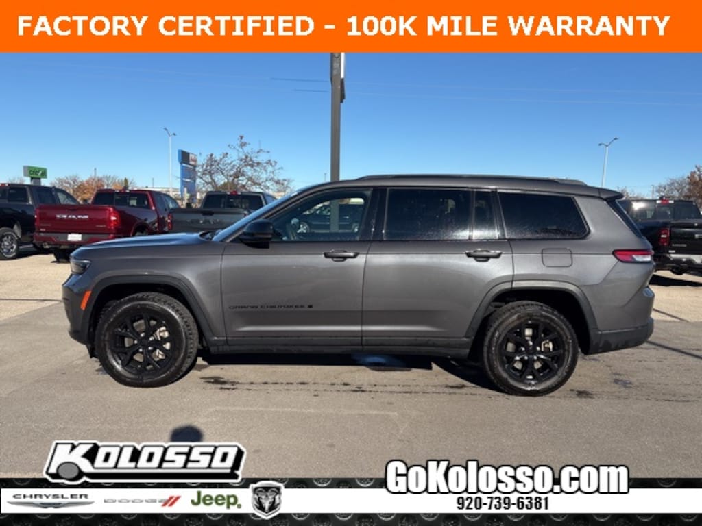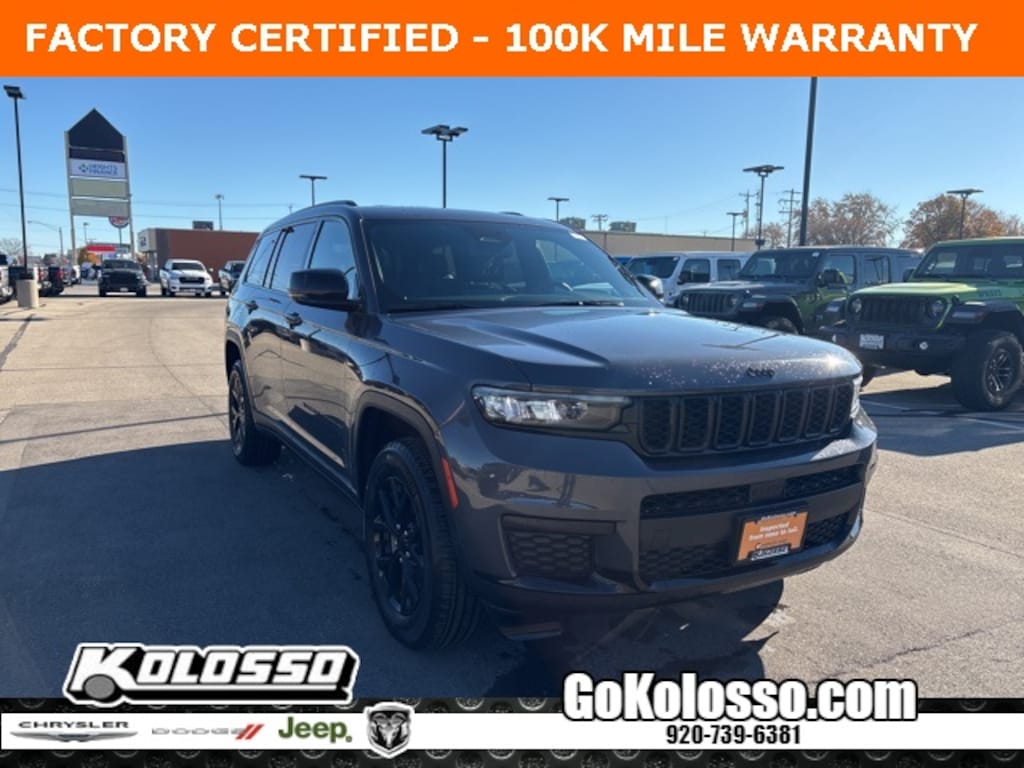 Certified. FACTORY CERTIFIED 7 YEAR/100K MILE WARRANTY, Grand Cherokee L Altitude, 4D Sport Utility, 3.6L V6 24V VVT, 8-Speed Automatic, 4WD, Baltic Gray Metallic Clearcoat, Global Black Artificial Leather, 115V Auxiliary Power Outlet, 3rd Row Charge-Only USB Ports, Altitude Appearance Package, Black Headliner, Capri Leatherette/Suede Seats, Delete Laredo Badge, Gloss Black Exterior Accents, Heated Front Seats, Heated Steering Wheel, Power Liftgate, Quick Order Package 23B Altitude, Radio: Uconnect 5 w/8.4" Display, Rain Sensitive Windshield Wipers, Remote Start System, Selectable Tire Fill Alert, Wheels: 18" x 8.0" Fully Painted Aluminum 1, Wireless Charging Pad.