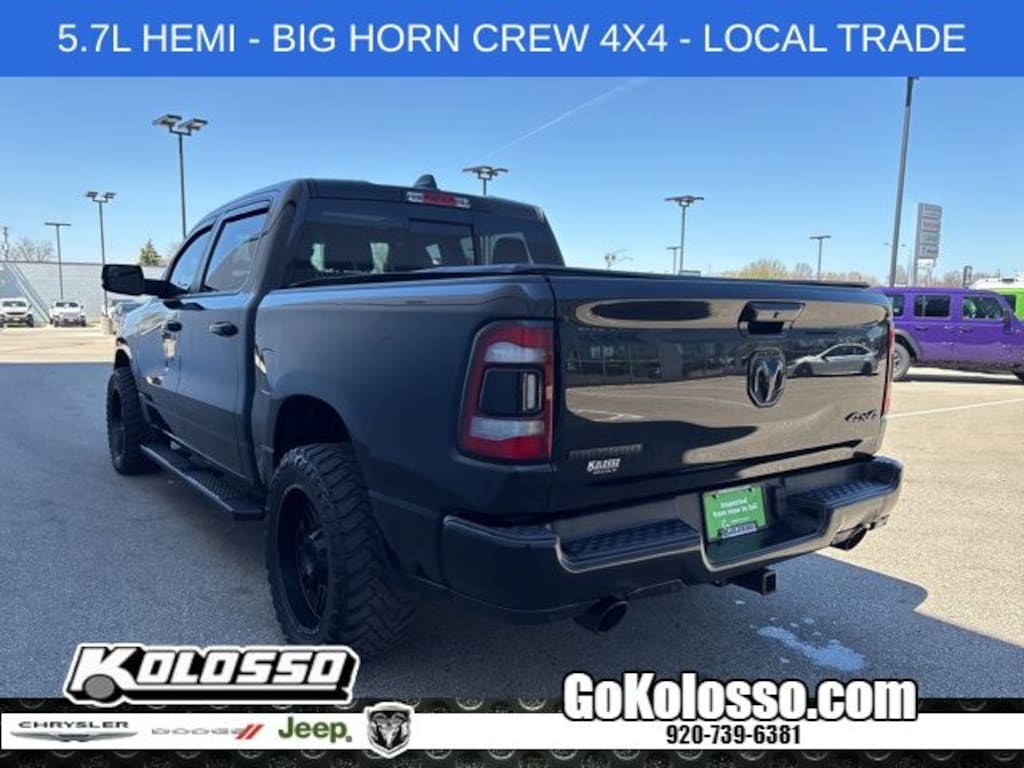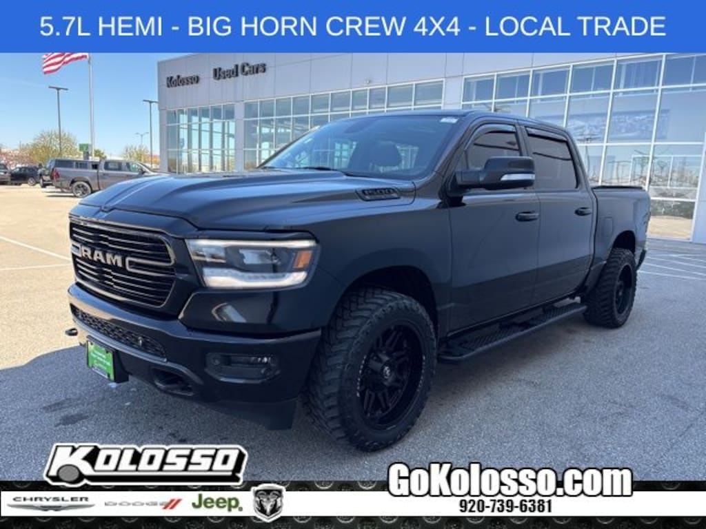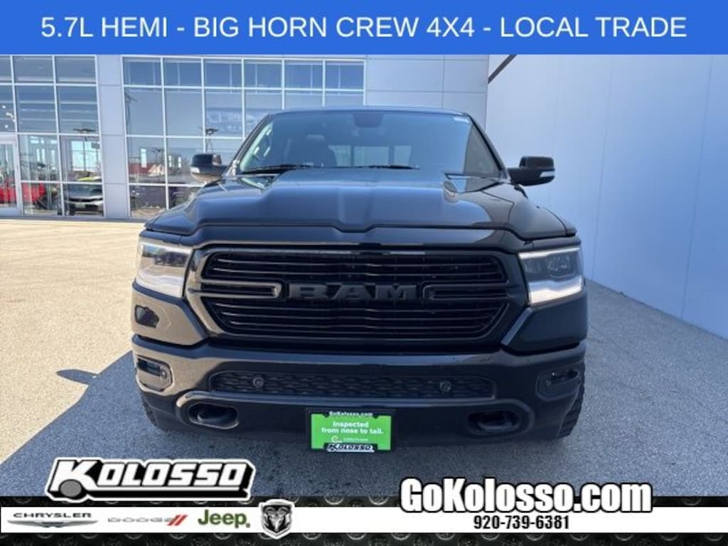 Recent Arrival! Certified. 1500 Big Horn/Lone Star, 4D Crew Cab, HEMI 5.7L V8 Multi Displacement VVT, 8-Speed Automatic, 4WD, Diamond Black Crystal Pearlcoat, Black Cloth, 115V Auxiliary Power Outlet, 115V Auxiliary Rear Power Outlet, 2 USB Full Function/Charge Only Media Hub, 400W Inverter, 8.4" Touchscreen Display, Air Conditioning ATC w/Dual Zone Control, Auto-Dimming Exterior Driver Mirror, Auto-Dimming Rear-View Mirror, Big Horn IP Badge, Big Horn Level 2 Equipment Group, Black Appearance Package, Black Exterior Truck Badging, Black Headlamp Bezels, Black Interior Accents, Body Color Door Handles, Body Color Front Bumper, Body Color Rear Bumper w/Step Pads, Class IV Receiver Hitch, Cluster 7.0" TFT Color Display, Dampened Tailgate, Deluxe Cloth Bucket Seats, Dome Dual LED Reading Lamp, Dual Exhaust w/Black Tips, Dual-Pane Panoramic Sunroof, Exterior Mirrors Courtesy Lamps, Exterior Mirrors w/Memory, Exterior Mirrors w/Supplemental Signals, Foam Bottle Insert (Door Trim Panel), Front LED Fog Lamps, Glove Box Lamp, GPS Navigation, Grille B/Color Outline 1 Texture 2, Heated Front Seats, Heated Steering Wheel, Integrated Center Stack Radio, LED Reflector Headlamps, LED Taillamps, Low tire pressure warning, Overhead LED Lamps, ParkSense Front/Rear Park Assist w/Stop, ParkView Rear Back-Up Camera, Power 4-Way Driver Lumbar Adjust, Power 8-Way Driver Seat, Power Adjustable Pedals, Power Heated Fold Away Mirrors, Power Heated Fold-Away Mirrors, Power-Folding Mirrors, Premium Lighting Group, Premium Overhead Console, Protection Group, Quick Order Package 25Z Big Horn/Lone Star, Radio: Uconnect 4 w/8.4" Display, Rear Dome w/On/Off Switch Lamp, Rear Power Sliding Window, Rear Window Defroster, Remote Start System, Security Alarm, Single Disc Remote CD Player, SiriusXM Satellite Radio, Steering Wheel Mounted Audio Controls, Sun Visors w/Illuminated Vanity Mirrors, Tow Hooks, Universal Garage Door Opener, Wheels: 20" x 9" Cast Aluminum Black.
