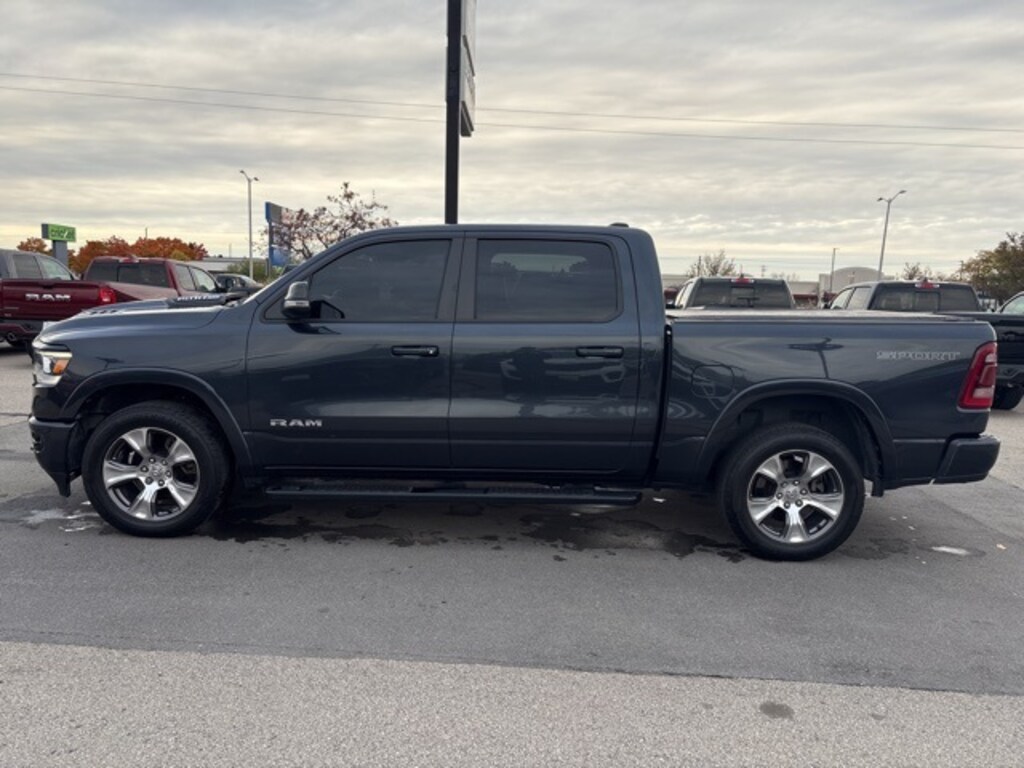 --LOCAL TRADE IN LARAMIE 4X4 SPORT PACKAGE WITH 5.7L HEMI POWER. FULL LEATHER SEATING WITH HEATED AND VENTILATED FRONT SEATS, HEATED STEERING WHEEL, APPLE CARPLAY, REMOTE START, POWER TAILGATE RELEASE, 20" ALLOY WHEELS, ANTI-SPIN DIFFERENTIAL, AND MUCH MORE. CLEAN CARFAX AND RAM FACTORY CERTIFIED.