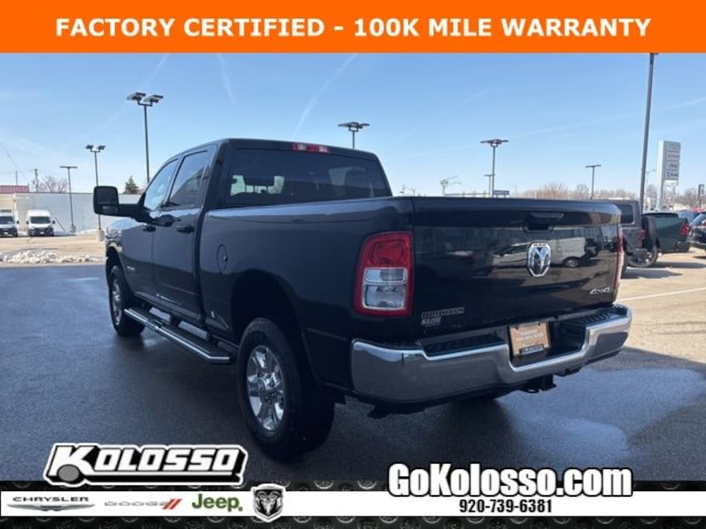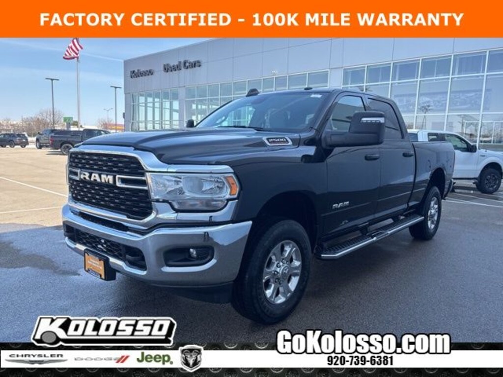 Recent Arrival! Certified. FACTORY CERTIFIED 7 YEAR/100K MILE WARRANTY, 2500 Big Horn, 4D Crew Cab, 6.4L V8, 8-Speed Automatic, 4WD, Diamond Black Crystal Pearlcoat, Diesel Gray/Black Cloth, 2nd Row In Floor Storage Bins, 4G LTE Wi-Fi Hot Spot, 8.4" Touchscreen Display, Apple CarPlay, Auto Power-Folding Mirrors, Bed Utility Group, Big Horn IP Badge, Black Exterior Mirrors, Bluetooth Handsfree Phone & Audio, Center Hub, Connectivity - US/Canada, Dual Glove Boxes, Emergency communication system: SiriusXM Guardian, Exterior Mirrors Courtesy Lamps, Exterior Mirrors w/Heating Element, Exterior Mirrors w/Supplemental Signals, Foam Bottle Insert (Door Trim Panel), Footwell Courtesy Lamp, For Details, Visit DriveUconnect.com, For More Info, Call 800-643-2112, Forward & Reverse Utility Lights, Front Fog Lamps, Global Telematics Box Module (TBM), Glove Box Lamp, Google Android Auto, GPS Antenna Input, Integrated Center Stack Radio, Integrated Voice Command w/Bluetooth, Leather Wrapped Steering Wheel, LED Bed Lighting, Level 1 Equipment Group, Locking Lower Glove Box, Low tire pressure warning, Mirror Running Lights, MOPAR Deployable Bed Step, MOPAR Spray In Bedliner, ParkView Rear Back-Up Camera, Power Adjust Mirrors, Power Adjustable Convex Aux Mirrors, Power Heated Fold Telescope Mirrors, Power Telescoping Mirrors, Premium Cloth 40/20/40 Bench Seat, Protection Group, Quick Order Package 2GZ Big Horn, Radio: Uconnect 5 W w/8.4" Display, Radio: Uconnect 5 W w/8.4" Display (A62), Rear Dome w/On/Off Switch Lamp, Selectable Tire Fill Alert, SiriusXM Radio Service, SiriusXM Satellite Radio, Steering Wheel Mounted Audio Controls, Tow Hooks, Wheels: 18" x 8.0" Polished Aluminum.