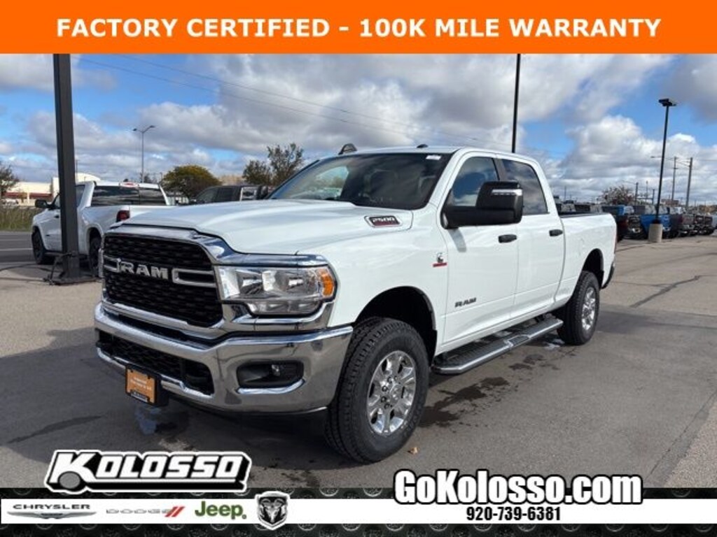 Certified. FACTORY CERTIFIED 7 YEAR/100K MILE WARRANTY, 2500 Big Horn, 4D Crew Cab, Cummins 6.7L I6 Turbodiesel, 6-Speed Automatic, 4WD, Bright White Clearcoat, Diesel Gray/Black Cloth, 2nd Row In Floor Storage Bins, 4G LTE Wi-Fi Hot Spot, 8.4" Touchscreen Display, Apple CarPlay, Auto Power-Folding Mirrors, Big Horn IP Badge, Black Exterior Mirrors, Bluetooth Handsfree Phone & Audio, Center Hub, Connectivity - US/Canada, Dual Glove Boxes, Exterior Mirrors Courtesy Lamps, Exterior Mirrors w/Heating Element, Exterior Mirrors w/Supplemental Signals, Foam Bottle Insert (Door Trim Panel), Footwell Courtesy Lamp, For Details, Visit DriveUconnect.com, For More Info, Call 800-643-2112, Forward & Reverse Utility Lights, Front Fog Lamps, Global Telematics Box Module (TBM), Glove Box Lamp, Google Android Auto, GPS Antenna Input, Integrated Center Stack Radio, Integrated Voice Command w/Bluetooth, Leather Wrapped Steering Wheel, Level 1 Equipment Group, Locking Lower Glove Box, Mirror Running Lights, Power Adjust Mirrors, Power Adjustable Convex Aux Mirrors, Power Heated Fold Telescope Mirrors, Power Telescoping Mirrors, Premium Cloth 40/20/40 Bench Seat, Quick Order Package 2HZ Big Horn, Radio: Uconnect 5 W w/8.4" Display (A62), Rear Dome w/On/Off Switch