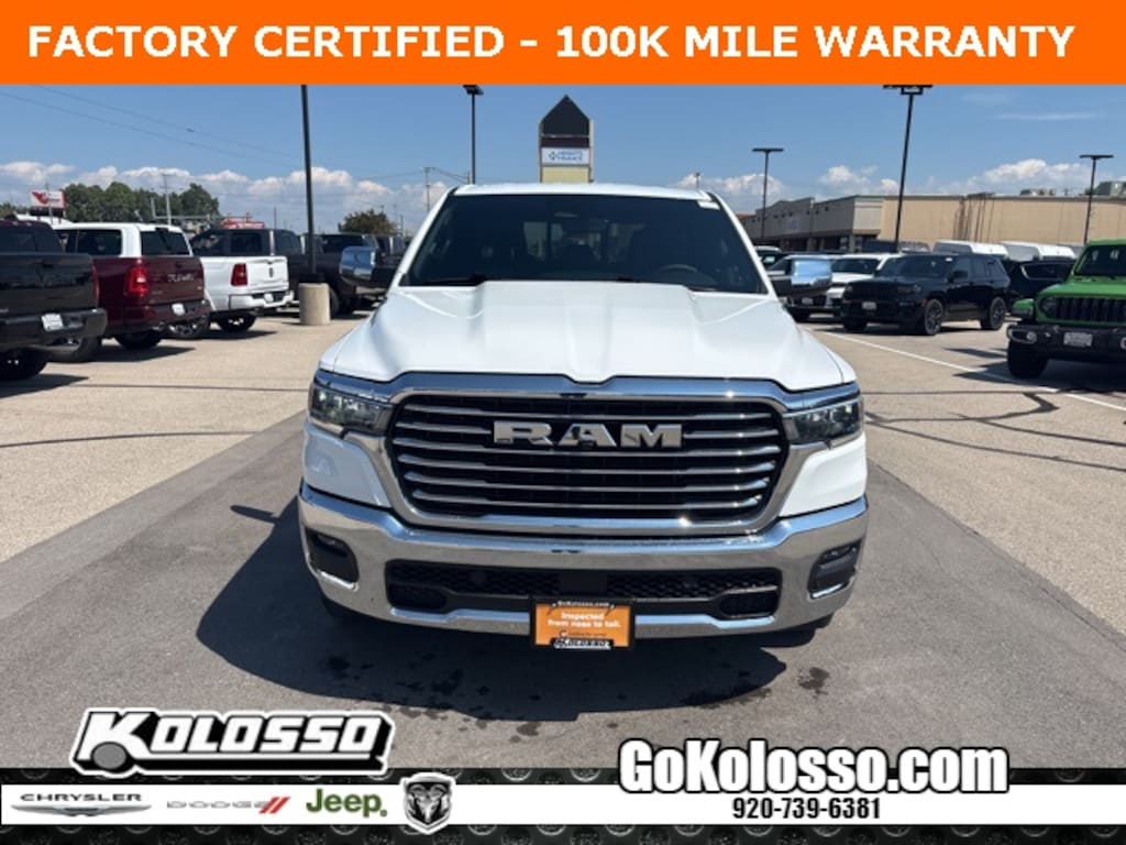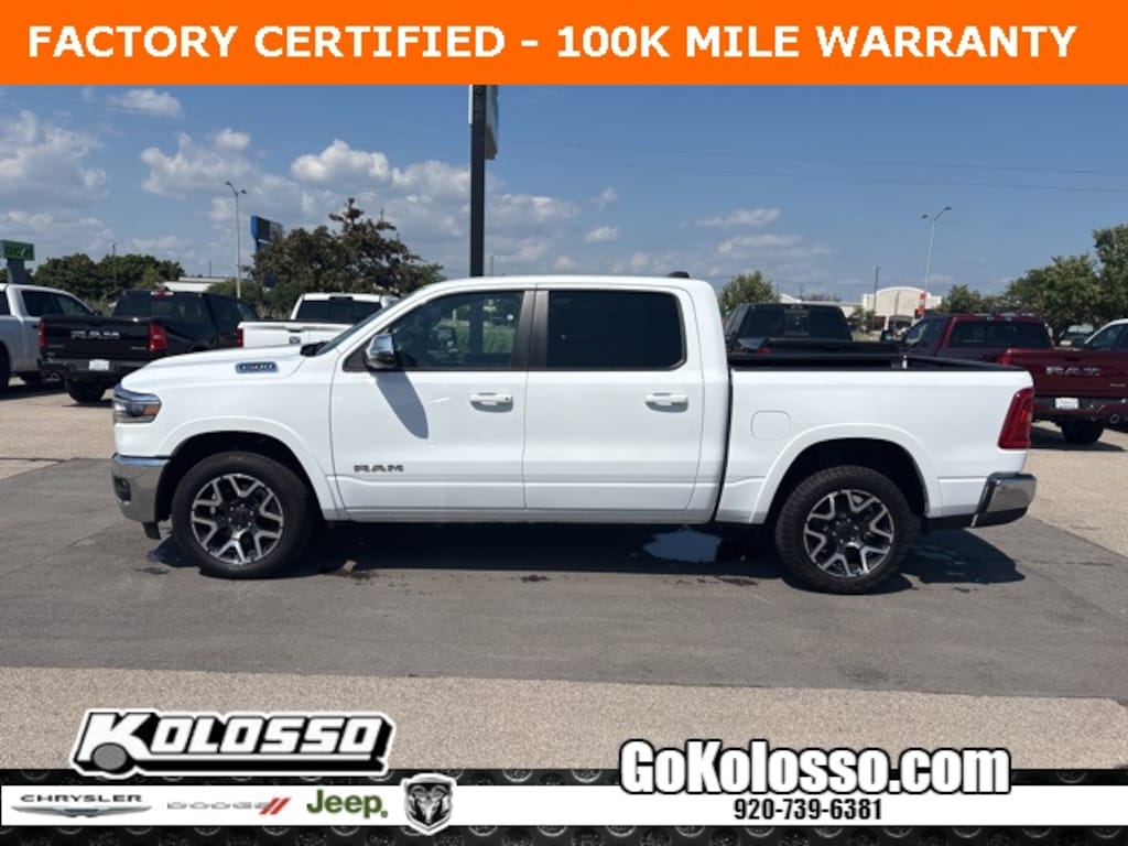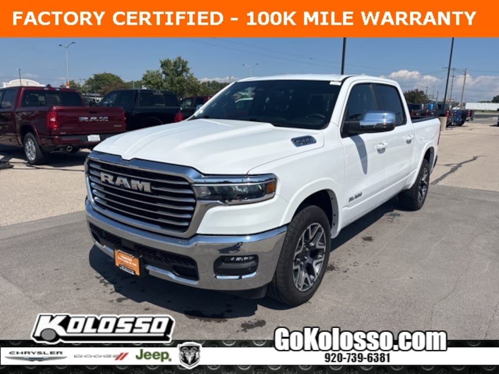 Certified. FACTORY CERTIFIED 7 YEAR/100K MILE WARRANTY, 1500 Laramie, 4D Crew Cab, 3.0L I6, 8-Speed Automatic, 4WD, Bright White Clearcoat, Black Leather, 3 Rear Seat Head Restraints, 4G LTE Wi-Fi Hot Spot, Air Conditioning, Apple CarPlay, Apple CarPlay/Android Auto, Connected Travel & Traffic Services, Connectivity - US/Canada, Driver Seat Memory, Exterior Mirrors w/Memory, GPS Navigation, Heated Front Seats, Heated front seats, Heated rear seats, Heated Steering Wheel, Heated steering wheel, Low tire pressure warning, Memory seat, Navigation System, ParkView Rear Back-Up Camera, Power 2-Way Driver Lumbar Adjust, Power 2-Way Passenger Lumbar Adjust, Power Adjust 8-Way Front Passenger Seat, Power driver seat, Power passenger seat, Power windows, Quick Order Package 21H Laramie, Radio: Uconnect 5 Nav w/12.0" Display, Steering wheel mounted audio controls, Ventilated Front Seats, Ventilated front seats.