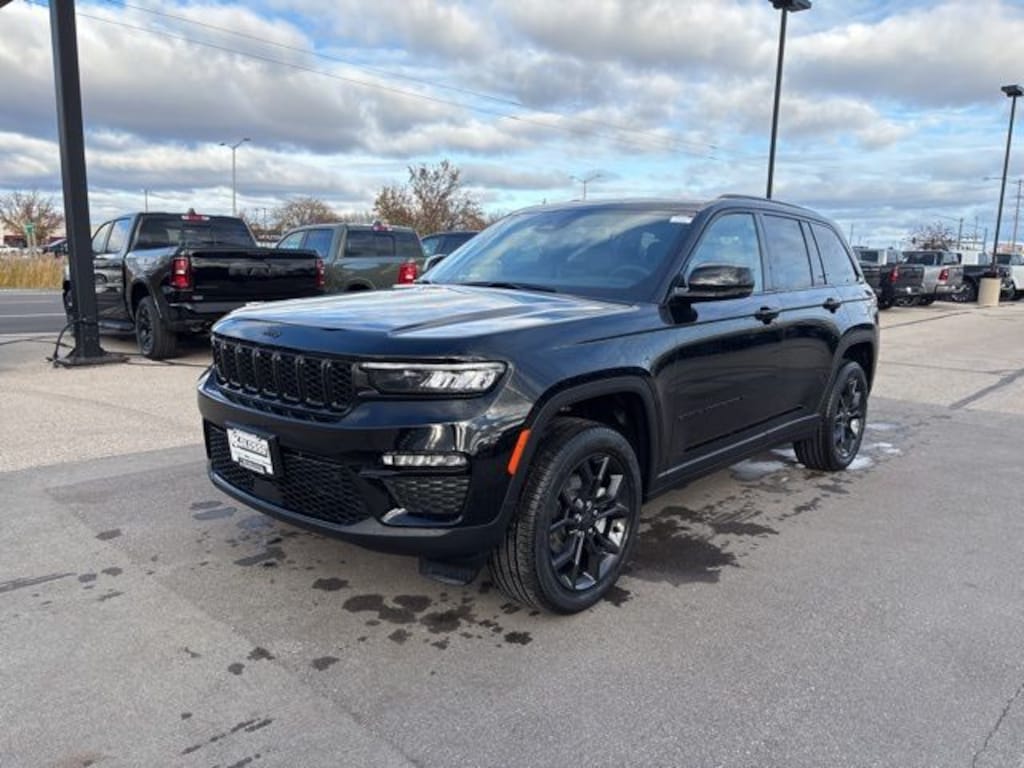 2025 Jeep Grand Cherokee Diamond Black Crystal Pearlcoat Limited 4WD 8-Speed Automatic 3.6L V6 24V VVT Grand Cherokee Limited, 4D Sport Utility, 3.6L V6 24V VVT, 8-Speed Automatic, 4WD, Diamond Black Crystal Pearlcoat, Global Black Artificial Leather, 220 Amp Alternator, Automatic Headlamp Levelling System, Black Painted Roof, Blackout Model, Class IV Receiver Hitch, Delete Limited Badge, Dual-Pane Panoramic Sunroof, Gloss Black Exterior Accents, Heavy-Duty Engine Cooling, Rear Load Levelling Suspension, Trailer Hitch Zoom, Trailer Tow Package, Wheels: 20" x 8.5" Black Painted Aluminum.