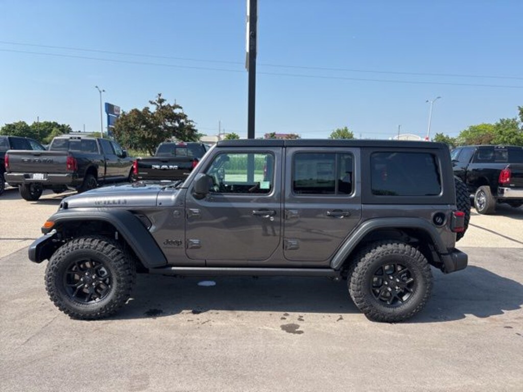 2025 Jeep Wrangler Granite Crystal Metallic Clearcoat Willys 4WD 8-Speed Automatic 3.6L V6 24V VVT To approved credit. Price does not include tax, title, license and service fee. See dealer for complete details. $1500 - 2025 National Bonus Cash . Exp. 03/02/2026 $2500 - 2025 National Retail Bonus Cash . Exp. 03/02/2026