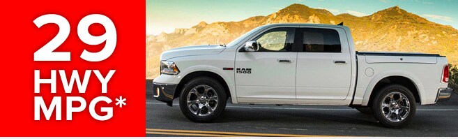 *29 HWY MPG- Based on Standard Pickup Class. Manufacturer's estimated mpg with 3.0L EcoDiesel engine and eight-speed automatic transmission, 4X2 HFE model. Actual mileage may vary.