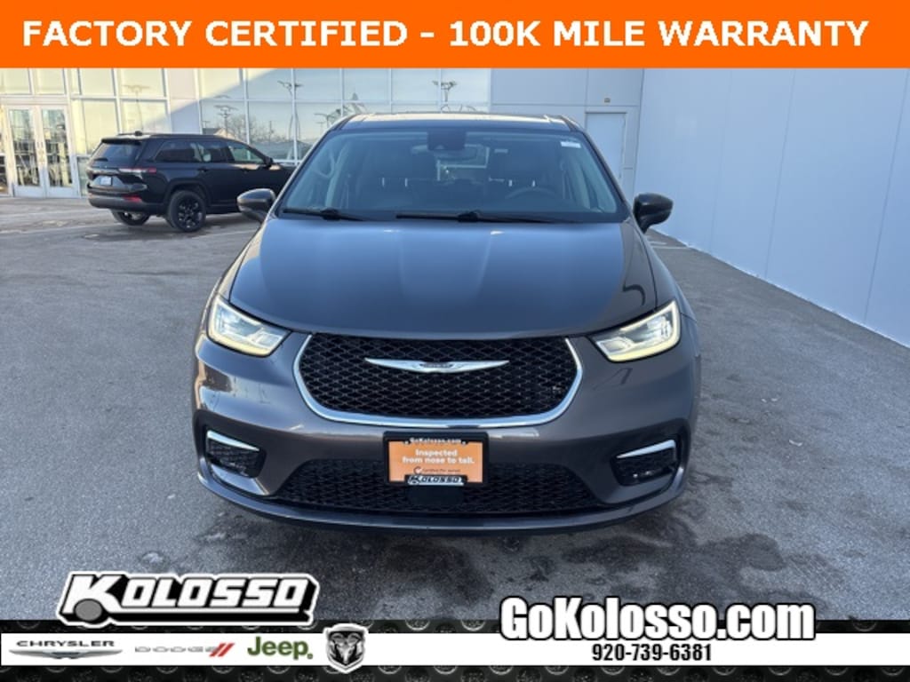 Certified. FACTORY CERTIFIED 7 YEAR/100K MILE WARRANTY, Pacifica Touring L, 4D Passenger Van, 3.6L V6 24V VVT, 9-Speed 948TE Automatic, FWD, Granite Crystal Metallic Clearcoat, Black/Alloy/Black Artificial Leather, Quick Order Package 27L, Radio: Uconnect 5 w/10.1" Display.