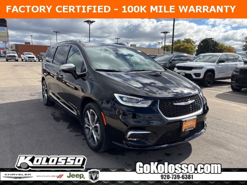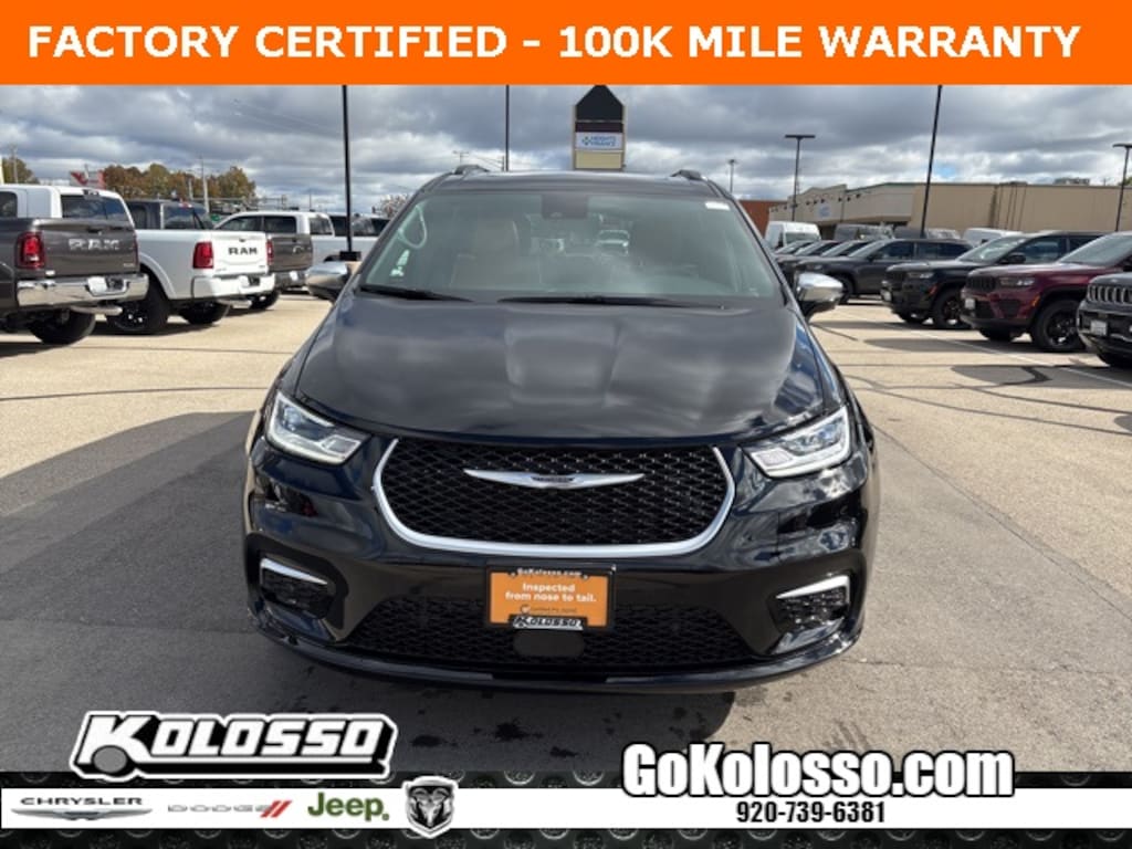 --1 OWNER LOCAL TRADE IN PINNACLE ALL WHEEL DRIVE (4X4) WITH FACTORY TRAILER TOW PACKAGE, 20" ALLOY WHEELS, POWER SLIDING DOORS, HEATED LEATHER AND VENTILATED FRONT SEATS, HEATED 2ND ROW SEATS, HEATED STEERING WHEEL, 8 WAY POWER DRIVERS SEAT, DUAL PANORAMIC MOONROOF, VACUUM CLEANER, 19 SPEAKER HARMAN KARDON SPEAKERS AND MORE. CLEAN CARFAX AND CHRYSLER FACTORY CERTIFIED WITH WARRANTY TO 100,000 MILES (SEE SALESMAN FOR DETAILS)