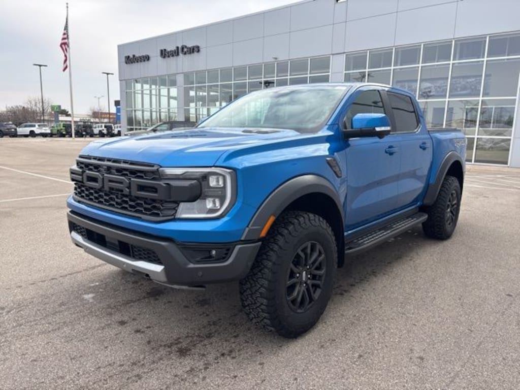 Recent Arrival! Ranger Raptor, 4D Crew Cab, 3.0L EcoBoost V6, 10-Speed Automatic, 4WD, Velocity Blue Metallic, Ebony Leather, Emergency communication system: SYNC 4 911 Assist, Equipment Group 800A Standard, Exterior Parking Camera Rear, Heated steering wheel, Low tire pressure warning, Memory seat, Navigation system: Connected Navigation, Power driver seat, Radio: B&O Sound System by Bang & Olufsen, SiriusXM Satellite Radio, Steering wheel mounted audio controls, SYNC 4A w/Connected Built-In Navigation.