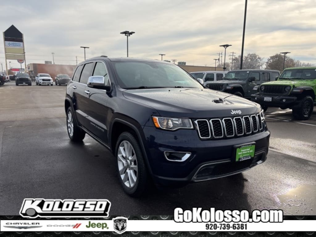 --LOCAL TRADE IN GRAND CHEROKEE LIMITED 4X4 V6 WITH LOW LOW MILES! TRUE BLUE COLOR WITH LEATHER HEATED SEATS, POWER MOONROOF, CLASS IV TRAILER TOW WITH FACTORY HITCH, FACTORY NAVIGATION, 20" SATIN SILVER ALLOY WHEELS, POWER LIFTGATE AND MUCH MORE. CLEAN CARFAX AND JEEF FACTORY CERTIFIED. (SEE SALESMAN FOR DETAILS)