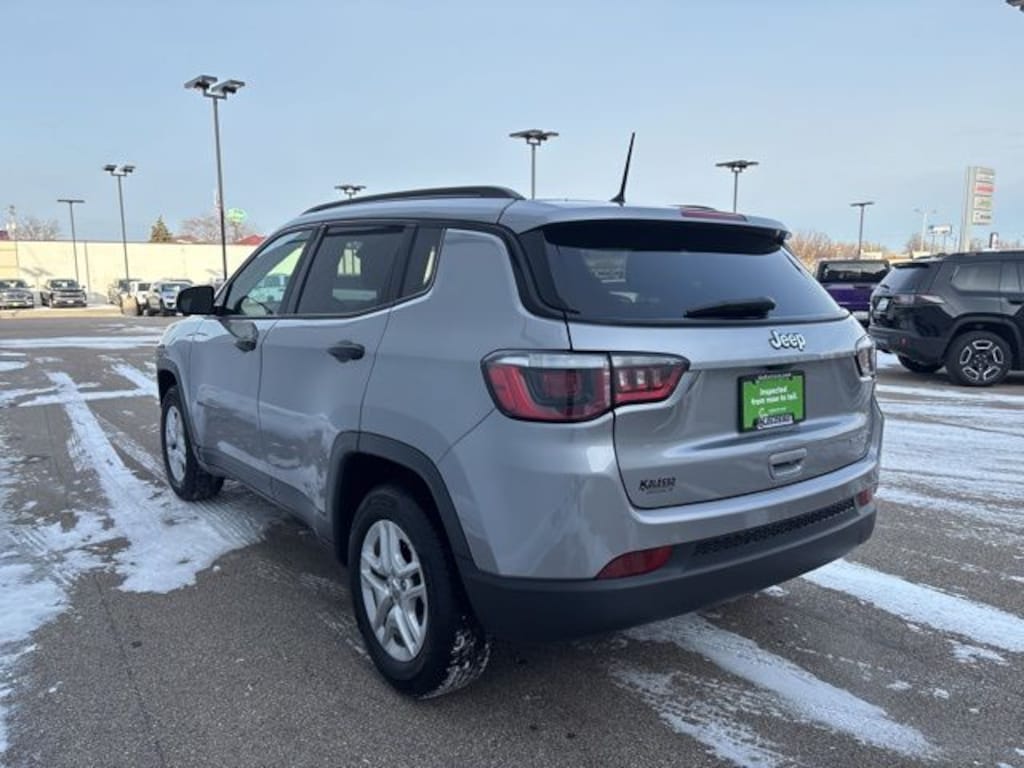 Certified. New Compass Sport, 4D Sport Utility, 2.4L I4 MultiAir, 6-Speed Aisin Automatic, FWD, Billet Silver Metallic Clearcoat, Black Cloth, Black Side Roof Rails, Deep Tint Sunscreen Glass, Low tire pressure warning, ParkView Rear Back-Up Camera, Quick Order Package 2FA, Sport Appearance Plus, Steering wheel mounted audio controls, Wheels: 16" x 6.5" Silver Painted Aluminum.