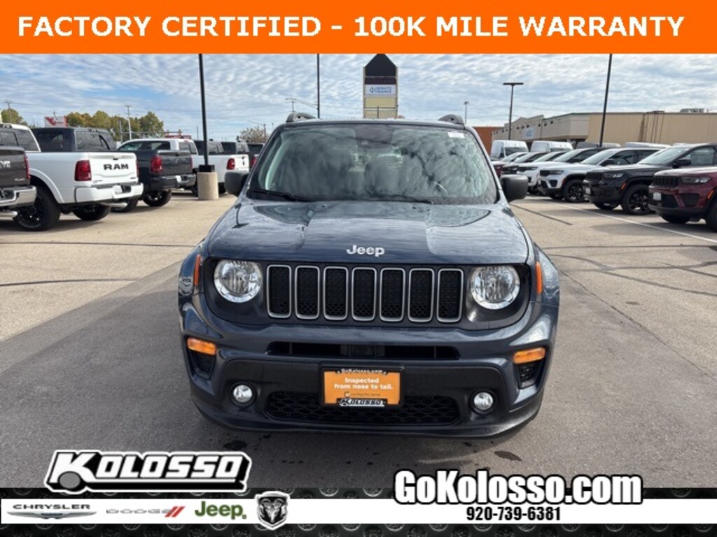 Certified. FACTORY CERTIFIED 7 YEAR/100K MILE WARRANTY, Renegade Latitude, 4D Sport Utility, 1.3L I4, 9-Speed 948TE Automatic, 4WD, Slate Blue Pearlcoat, Black Cloth, 115V Auxiliary Power Outlet, 40/20/40 Rear Seat w/Trunk Pass-Thru, Auto-Dimming Rear-View Mirror, Convenience Group, Heated Front Seats, Heated Steering Wheel, Navigation System, Power 2-Way Driver Lumbar Adjust, Power Adjust 8-Way Driver Seat, Quick Order Package 22B, Radio: Uconnect 4C Nav w/8.4" Display, Rain Sensitive Windshield Wipers, Steering wheel mounted audio controls, Windshield Wiper De-Icer.