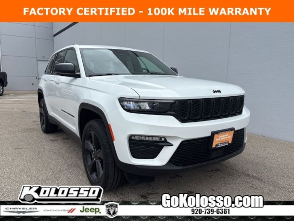Certified. FACTORY CERTIFIED 7 YEAR/100K MILE WARRANTY, Grand Cherokee Limited, 4D Sport Utility, 3.6L V6 24V VVT, 8-Speed Automatic, 4WD, Bright White Clearcoat, Global Black Artificial Leather, Black Appearance Package, Emergency communication system, Gloss Black Exterior Accents, Low tire pressure warning, Navigation System, ParkView Rear Back-Up Camera, Power Liftgate, Quick Order Package 23E, Radio: Uconnect 5 Nav w/10.1" Display, Steering wheel mounted audio controls, Wheels: 20" x 8.5" Gloss Black Painted Aluminum.