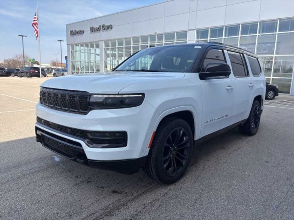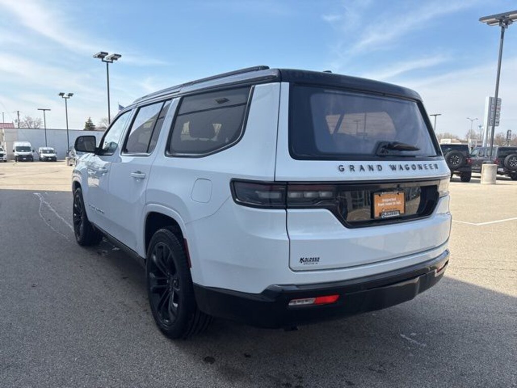 Certified. FACTORY CERTIFIED 7 YEAR/100K MILE WARRANTY, Grand Wagoneer Series III, 4D Sport Utility, 3.0L I6, 8-Speed Automatic, 4WD, Bright White Clearcoat, Global Black Leather, Amazon Fire TV Built-In, Black Interior Accents, Black Roof, Emergency communication system: Wagoneer Connect, Gloss Black Upper & Lower DLO Molding, HD Trailer Tow Package, Heads-Up Display, Heated front seats, Heated rear seats, Heated steering wheel, Heavy-Duty Engine Cooling, Low tire pressure warning, Memory seat, Navigation System, Obsidian Appearance Package, Pedal memory, Piano Black Exterior Accents, Power driver seat, Power moonroof, Power windows, Quick Order Package 28T Obsidian, Radio: Uconnect 5 Nav w/12.0" Display, Rear Seat Video Group 1, Removable Rear Tow Hook, Seatback Video Screens, Steering wheel memory, Steering wheel mounted audio controls, Trailer Brake Control, Trailer Hitch Zoom, Two Tone Paint Group, Ventilated front seats, Ventilated rear seats, Video USB Port, Wheels: 22" x 9.0" Tinted Polished w/Black Insert.