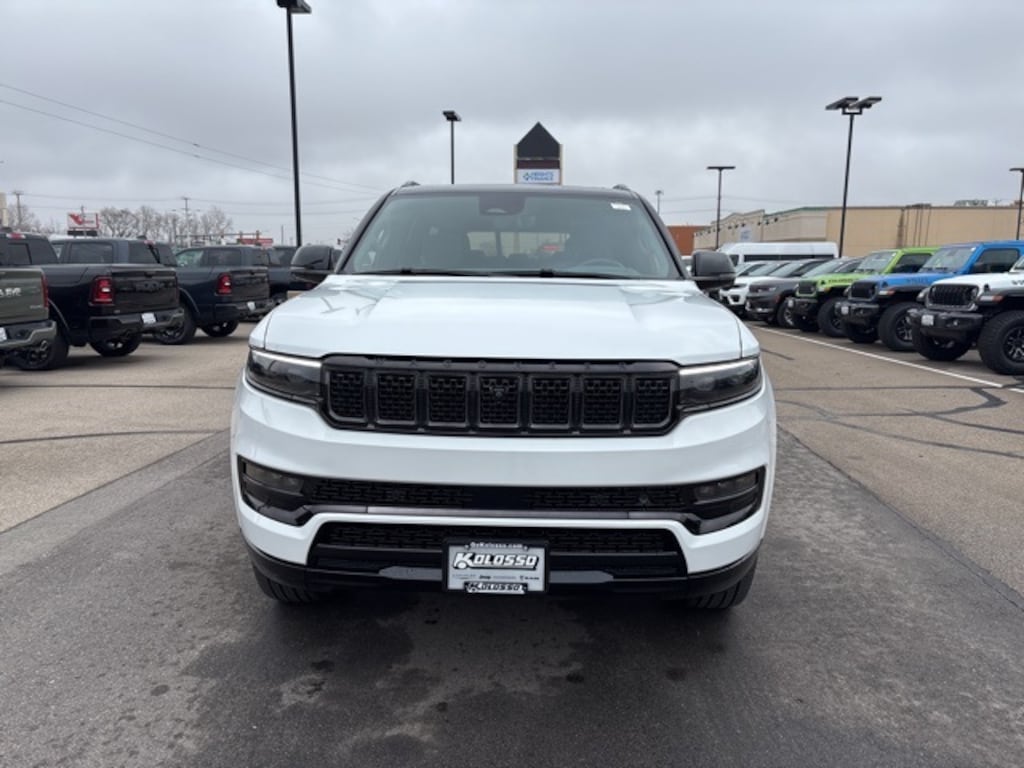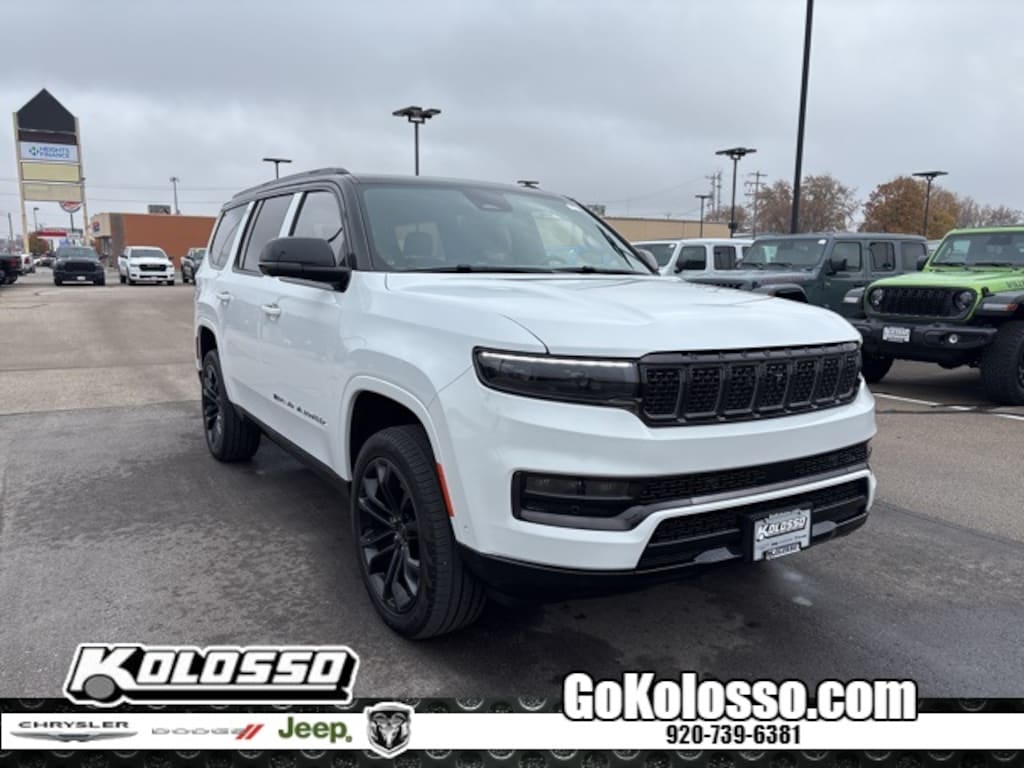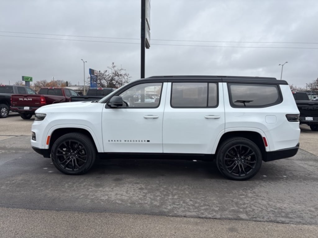 Certified. FACTORY CERTIFIED 7 YEAR/100K MILE WARRANTY, Grand Wagoneer Series III, 4D Sport Utility, 3.0L I6, 8-Speed Automatic, 4WD, Bright White Clearcoat, Blue Agave Leather, Air Conditioning, All-Season Floor Mats, Amazon Fire TV Built-In, Black Interior Accents, Black Roof, Cargo Tray, Emergency communication system: Wagoneer Connect, Gloss Black Upper & Lower DLO Molding, Heads-Up Display, Heated front seats, Heated rear seats, Heated steering wheel, Low tire pressure warning, Memory seat, MOPAR Interior Protection Package, Navigation System, Night vision lights, Obsidian Appearance Package, Pedal memory, Piano Black Exterior Accents, Power driver seat, Power Liftgate, Power moonroof, Power passenger seat, Power windows, Quick Order Package 28T Obsidian, Radio: Uconnect 5 Nav w/12.0" Display, Rain sensing wipers, Rear air conditioning, Rear Seat Video Group 1, Seatback Video Screens, Speed-Sensitive Wipers, Steering wheel memory, Steering wheel mounted audio controls, Two Tone Paint Group, Ventilated front seats, Ventilated rear seats, Video USB Port, Wheels: 22" x 9.0" Tinted Polished w/Black Insert.