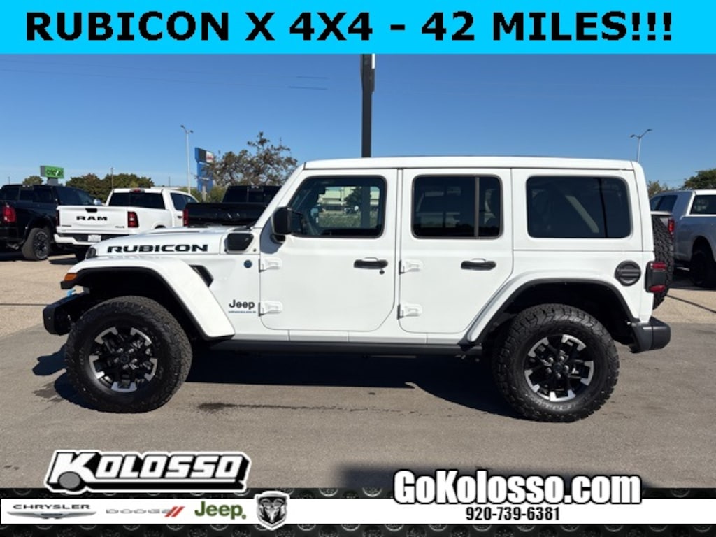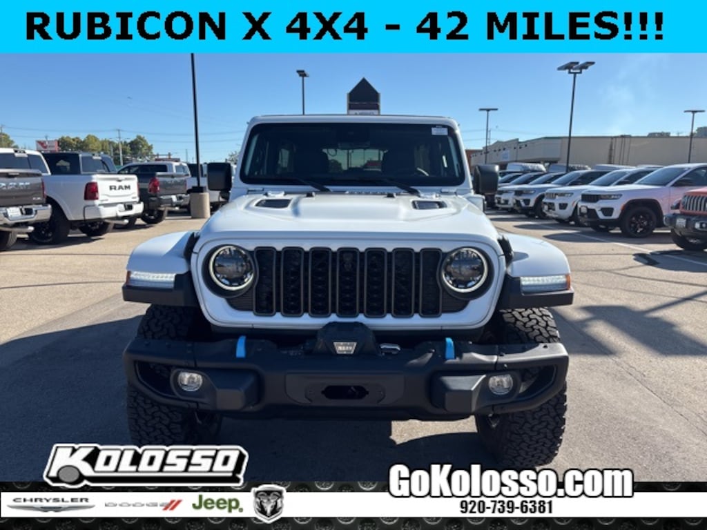 Wrangler Rubicon X 4xe, 4D Sport Utility, 2.0L I4 DOHC, 8-Speed Automatic, 4WD, Bright White Clearcoat, Black Leather, 12.3" Touchscreen Display, 4G LTE Wi-Fi Hot Spot, Acoustic Front Seat Area Carpet, Acoustic Laminated Front Door Glass, Alpine Premium Audio System, Apple CarPlay, Auto High Beam Headlamp Control, Auto-Dimming Rear-View Mirror, Blind Spot & Cross Path Detection, Body Color 3-Piece Hard Top, Body Color Rubicon Highline Flare, Connected Travel & Traffic Services, Connectivity - US/Canada, Disassociated Touchscreen Display, Freedom Panel Storage Bag, Google Android Auto, GPS Navigation, HD Radio, Heated Front Seats, Heated Steering Wheel, Integrated Center Stack Radio, Integrated Off-Road Camera, Integrated Voice Command w/Bluetooth, MOPAR Hardtop Headliner, Nappa Leather Seats, No Soft Top, ParkSense Rear Park Assist System, Quick Order Package 29Y Rubicon X, Radio: Uconnect 5 Nav w/12.3" Display, Rear Window Defroster, Rear Window Wiper/Washer, Remote Start System, SiriusXM Radio Service, SiriusXM w/360L, Steel Front Bumper, Steel Rear Bumper, Trailer Tow Prep Package, Universal Garage Door Opener.