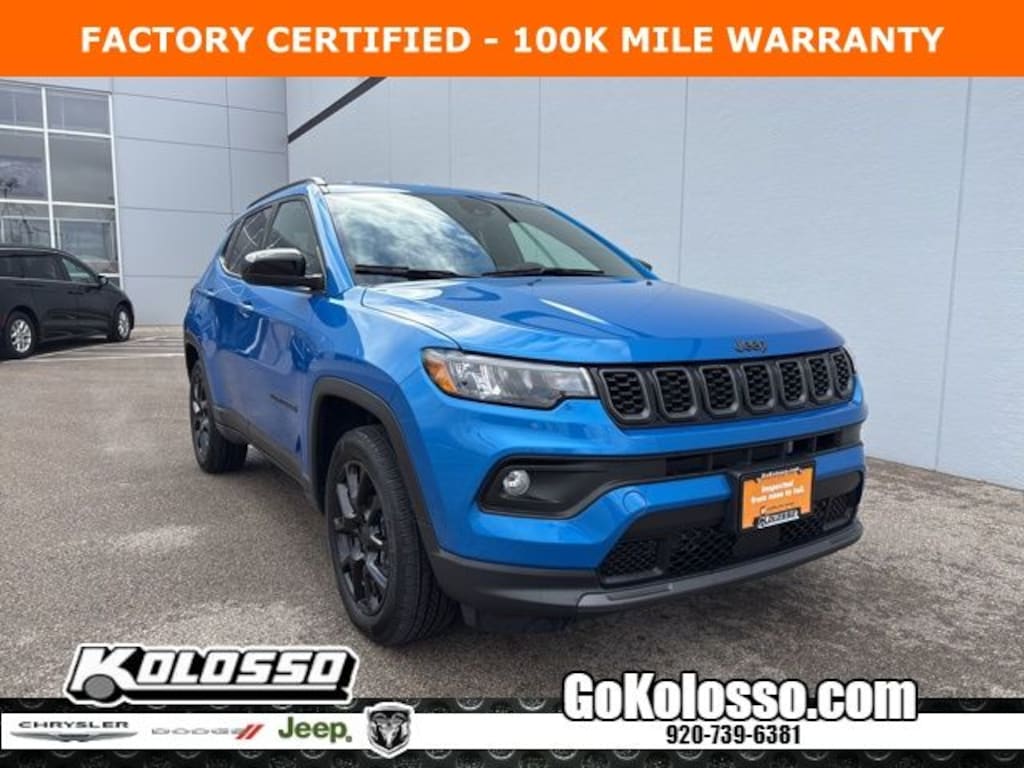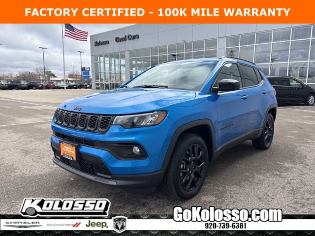 Recent Arrival! Certified. FACTORY CERTIFIED 7 YEAR/100K MILE WARRANTY, Compass Latitude, 4D Sport Utility, 2.0L I4 DOHC, 8-Speed Automatic, 4WD, Hydro Blue Pearlcoat, Black Cloth, 10.1" Touchscreen Display, Altitude Special Edition, Black Day Light Opening Moldings, Emergency communication system: Jeep Connect, Gloss Black Surround/Neutral Gray Rings, Low tire pressure warning, Neutral Gray Exterior Badging, ParkView Rear Back-Up Camera, Piano Black Interior Accents, Premium audio system: UConnect 5, Quick Order Package 29J, Radio: Uconnect 5 w/8.4" Display, Sliding Sun Visors w/Illuminated Mirrors, Steering wheel mounted audio controls, Wheels: 18" x 7" Gloss Black Painted Aluminum.