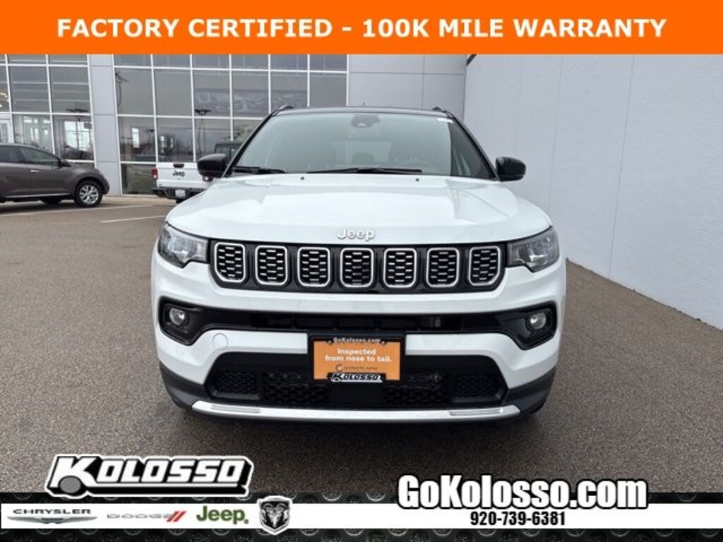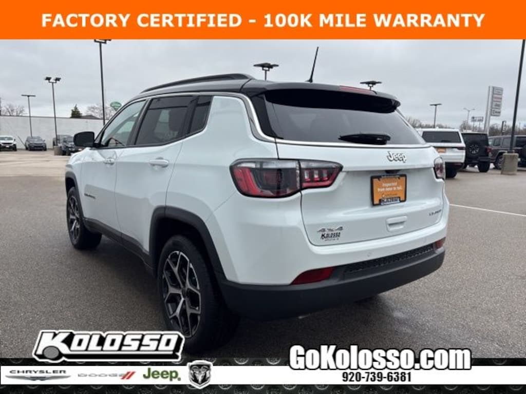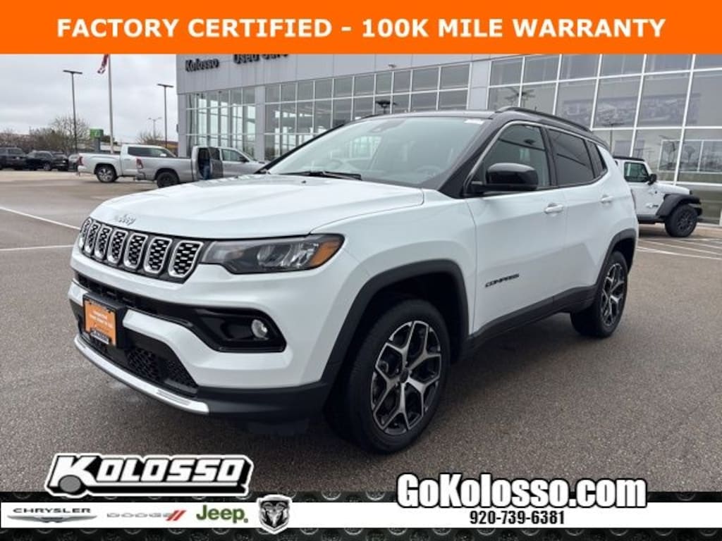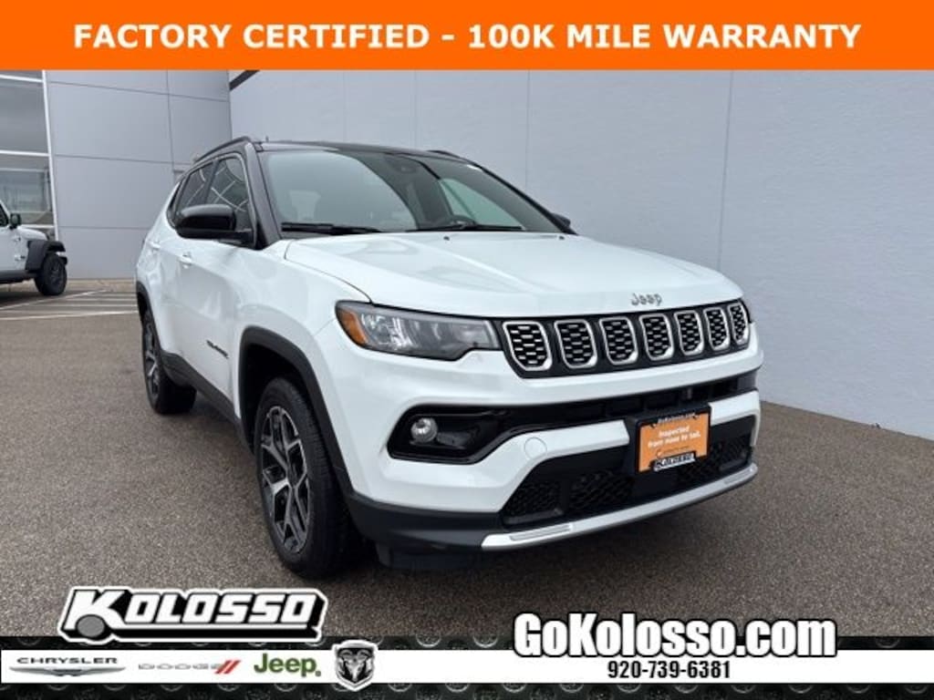 Recent Arrival! Certified. FACTORY CERTIFIED 7 YEAR/100K MILE WARRANTY, Compass Limited, 4D Sport Utility, 2.0L I4 DOHC, 8-Speed Automatic, 4WD, Bright White Clearcoat, Black Artificial Leather, Emergency communication system: Jeep Connect, Low tire pressure warning, ParkView Rear Back-Up Camera, Premium audio system: UConnect 5, Quick Order Package 29G, Radio: Uconnect 5 w/10.1" Display, Steering wheel mounted audio controls.