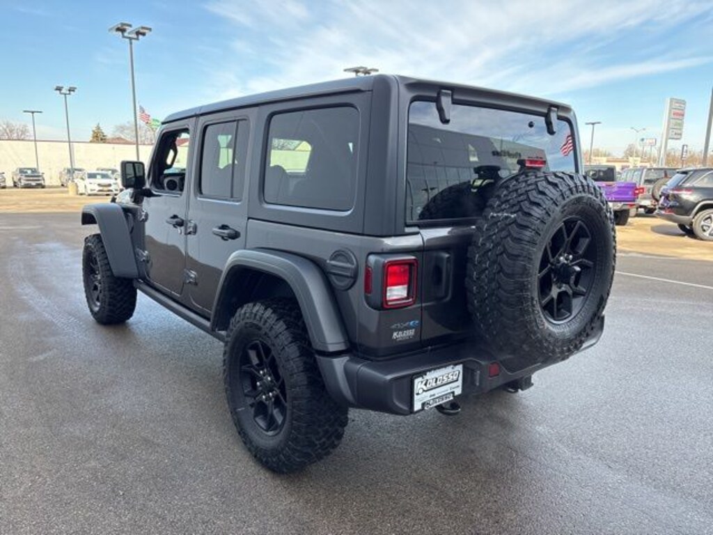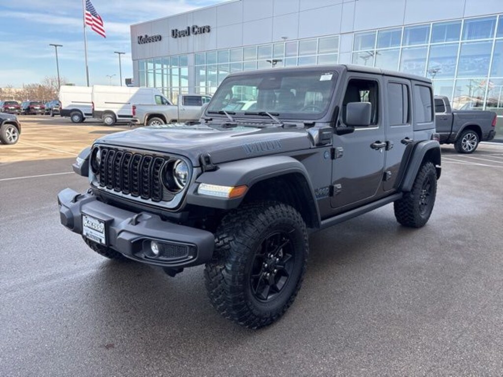 Certified. FACTORY CERTIFIED 7 YEAR/100K MILE WARRANTY, Wrangler Willys 4xe, 4D Sport Utility, 2.0L I4 DOHC, 8-Speed Automatic, 4WD, Granite Crystal Metallic Clearcoat, Black Cloth, 4-Wheel Drive Swing Gate Decal, 4.10 Rear Axle Ratio, 7 & 4 Pin Wiring Harness, 97 MPH Vehicle Max Speed Calibration, Auxiliary Switches, Black Grille, Class II Receiver Hitch, Conventional Differential Front Axle, E-Locker Rear Axle, Front LED Fog Lamps, LED Premium Reflector Headlamps, Low tire pressure warning, Molded in Color Rubicon Highline Flare, MOPAR All-Weather Floor Mats, Off-Road Plus Mode, ParkView Rear Back-Up Camera, Quick Order Package 29W Willys 4xe, Radio: Uconnect 5 w/12.3" Display, Steering wheel mounted audio controls, Wheels: 17" x 7.5" Painted Black, Willy's Suspension, Willys 4xe Hood Decal.