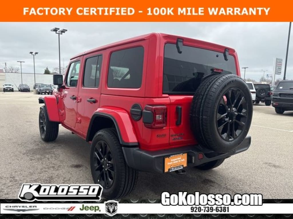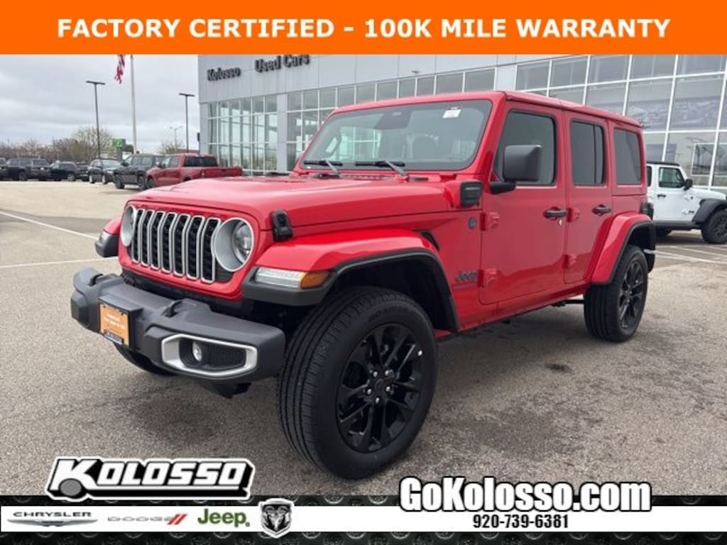 Recent Arrival! Certified. FACTORY CERTIFIED 7 YEAR/100K MILE WARRANTY, Wrangler Sahara 4xe, 4D Sport Utility, 2.0L I4 DOHC, 8-Speed Automatic, 4WD, Firecracker Red Clearcoat, Black Cloth, Auto High Beam Headlamp Control, Blind Spot & Cross Path Detection, Body Color 3-Piece Hard Top, Emergency communication system: Jeep Connect, Freedom Panel Storage Bag, Low tire pressure warning, ParkSense Rear Park Assist System, Quick Order Package 29P Sahara 4xe, Radio: Uconnect 5 w/12.3" Display, Rear Window Defroster, Rear Window Wiper/Washer, Safety Group, Steering wheel mounted audio controls.