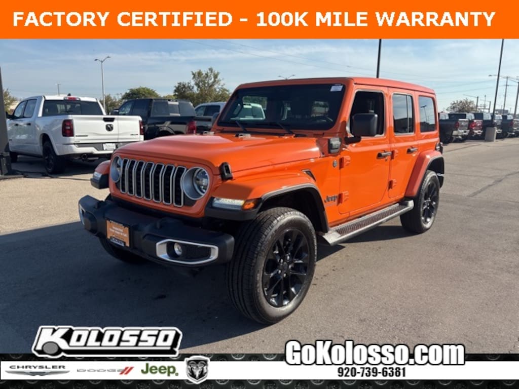 --LOCAL 1 OWNER TRADE IN "JOOSE" WRANGLER SAHARA 4XE 4X4 WITH SKY TOP CONVERTIBLE ROOF, MCKINLEY LEATHER SEATING, COLD WEATHER PACKAGE WITH HEATED SEATS, HEATED STEERING WHEEL, SIDE STEPS, BLND SPOT MONTIOR, 8 WAY POWER DRIVERS SEAT, FACTORY NAVIGATION, FACTORY TRAILER TOW PACKAGE WITH HITCH, APPLE CARPLAY AND MUCH MORE. CLEAN CARFAX AND JEEP FACTORY CERTIFIED WITH WARRANTY TO 100,000 MILES. (SEE SALESMAN FOR DETAILS)