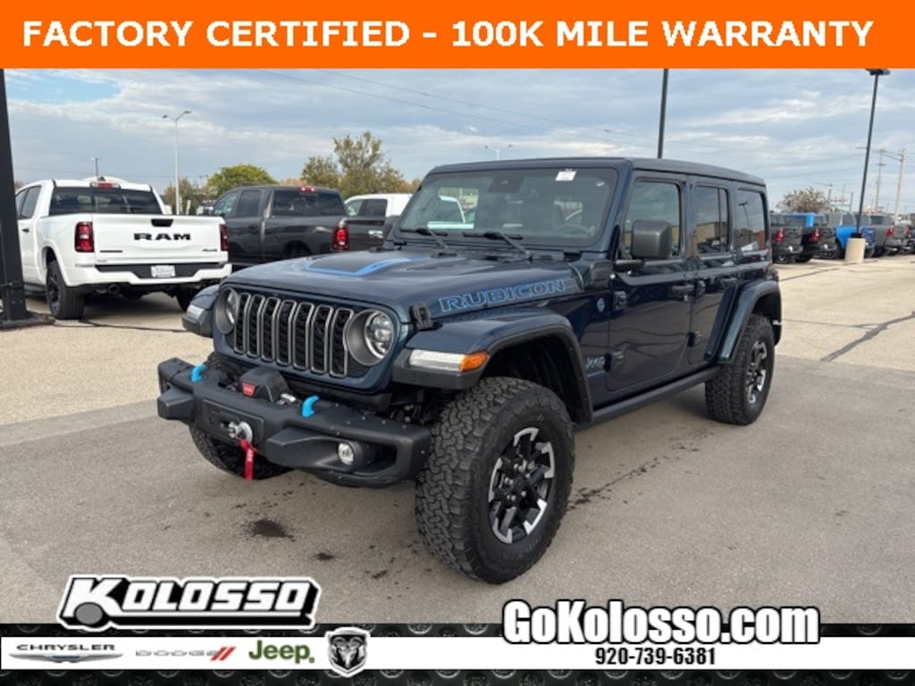 Recent Arrival! Certified. FACTORY CERTIFIED 7 YEAR/100K MILE WARRANTY, Wrangler Rubicon X 4xe, 4D Sport Utility, 2.0L I4 DOHC, 8-Speed Automatic, 4WD, Fathom Blue Pearlcoat, Black Leather, 12.3" Touchscreen Display, 4G LTE Wi-Fi Hot Spot, A/C Power Box Inverter (PHEV), Acoustic Front Seat Area Carpet, Acoustic Laminated Front Door Glass, Black MOPAR Perforated Leather, Body Color 3-Piece Hard Top, Body Color Rubicon Highline Flare, Convenience Group, EV/PHEV Vehicle To Load, GPS Navigation, Heated Front Seats, Heated Steering Wheel, MOPAR Hardtop Headliner, Nappa Leather Seats, Quick Order Package 29Y Rubicon X 4xe, Radio: Uconnect 5 Nav w/12.3" Display, Radio: Uconnect 5 w/12.3" Display, Remote Start System, Rubicon 4xe Hood Top Decal, Safety Group, Steel Front Bumper, Steel Rear Bumper, Technology Group, Trailer Tow Prep Package, Universal Garage Door Opener.
