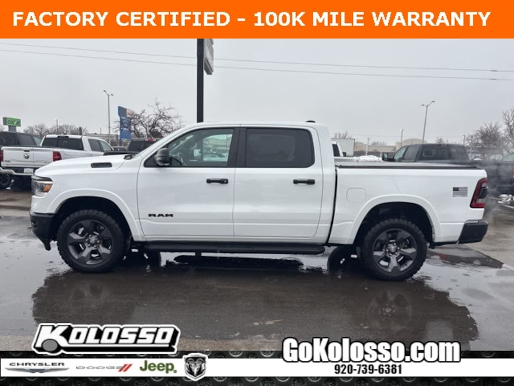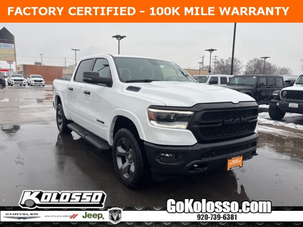 Recent Arrival! Certified. FACTORY CERTIFIED 7 YEAR/100K MILE WARRANTY, 1500 Big Horn/Lone Star, 4D Crew Cab, HEMI 5.7L V8 Multi Displacement VVT eTorque, 8-Speed Automatic, 4WD, Bright White Clearcoat, Black Cloth, 115V Auxiliary Power Outlet, 2nd Row In Floor Storage Bins, 400W Inverter, 4G LTE Wi-Fi Hot Spot, 8.4" Touchscreen Display, 9 Amplified Speakers w/Subwoofer, Air Conditioning ATC w/Dual Zone Control, Apple CarPlay, Auto-Dimming Exterior Driver Mirror, Auto-Dimming Rear-View Mirror, Big Horn Badge, Big Horn Level 2 Equipment Group (DISC), Black Exterior Mirrors, Black Premium Power Mirrors, Bluetooth Handsfree Phone & Audio, Class IV Receiver Hitch, Cluster 7.0" TFT Color Display, Connectivity - US/Canada, Convex Wide-Angle Exterior Mirror Insert, Electric Shift-On-Demand Transfer Case, Exterior Mirrors Courtesy Lamps, Exterior Mirrors w/Heating Element, Exterior Mirrors w/Supplemental Signals, For Details, Visit DriveUconnect.com, For More Info, Call 800-643-2112, Front Fog Lamps, Glove Box Lamp, Google Android Auto, GPS Antenna Input, Heated Front Seats, Heated Steering Wheel, Integrated Center Stack Radio, LED Footwell Lighting, Media Hub w/2 Charge Only USBs, ParkSense Front/Rear Park Assist w/Stop, Power 2-Way Driver Lumbar Adjust, Power 8-Way Driver Seat, Power Adjustable Pedals, Power-Folding Mirrors, Quick Order Package 27Z Big Horn, Radio: Uconnect 5 W w/8.4" Display, Rear Dome w/On/Off Switch Lamp, Rear Power Sliding Window, Rear Window Defroster, Remote Start System, Security Alarm, SiriusXM Satellite Radio, Sun Visors w/Illuminated Vanity Mirrors, Universal Garage Door Opener, USB Host Flip.