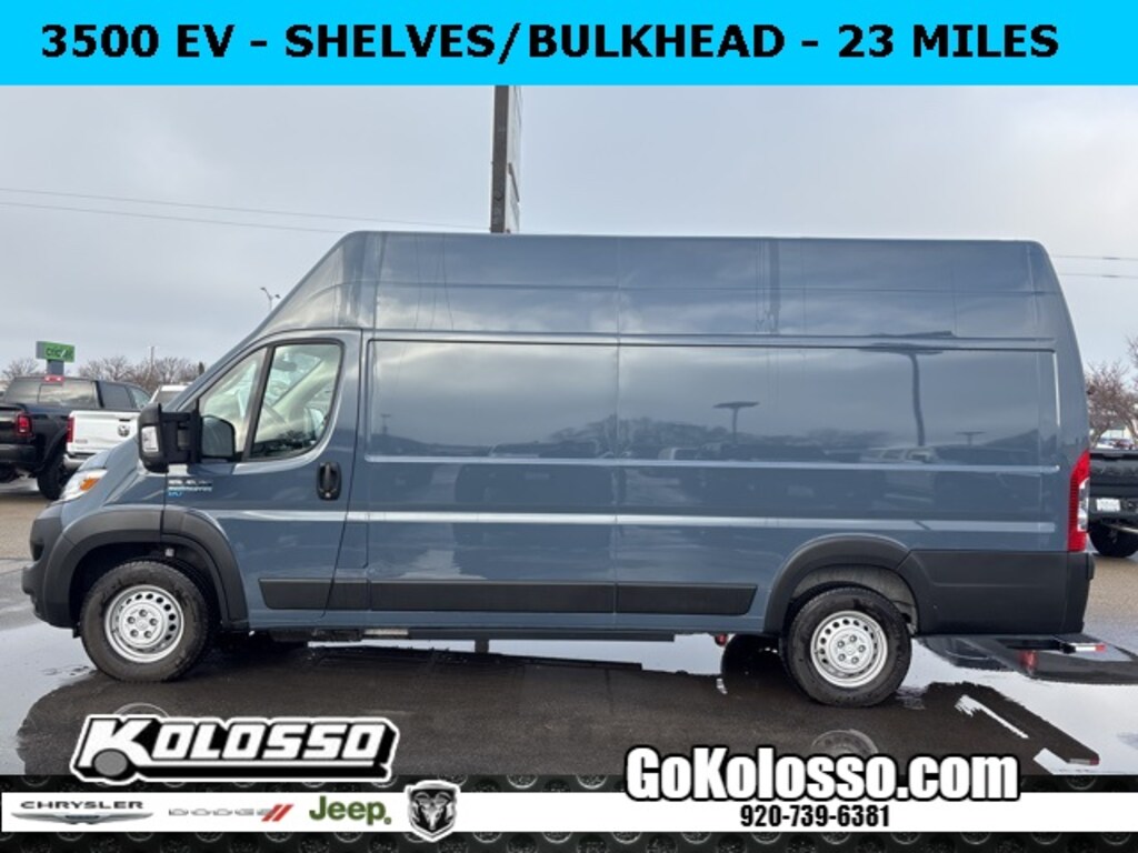 ---FACTORY UNIT 2025 PROMASTER 3500 EV WITH 23 MILES AND BALANCE OF FACTORY WARRANTY, LAST MILE DELIVERY PACKAGE, FULL BULKHEAD, FOLDABLE SHELVES ALREADY IN, HEATED STEERING WHEEL, BLIND SPOT MONITOR, SURROUND VIEW BACK UP CAMERA, SLIDING SIDE DOOR AND SLIDING REAR DOOR, AIR CONDITION AND SO MUCH MORE. MAXIMIZE FUEL ECONOMY AND RANGE WITH THIS EV. CLEAN CARFAX AND BALANCE OF FACTORY WARRANTY.